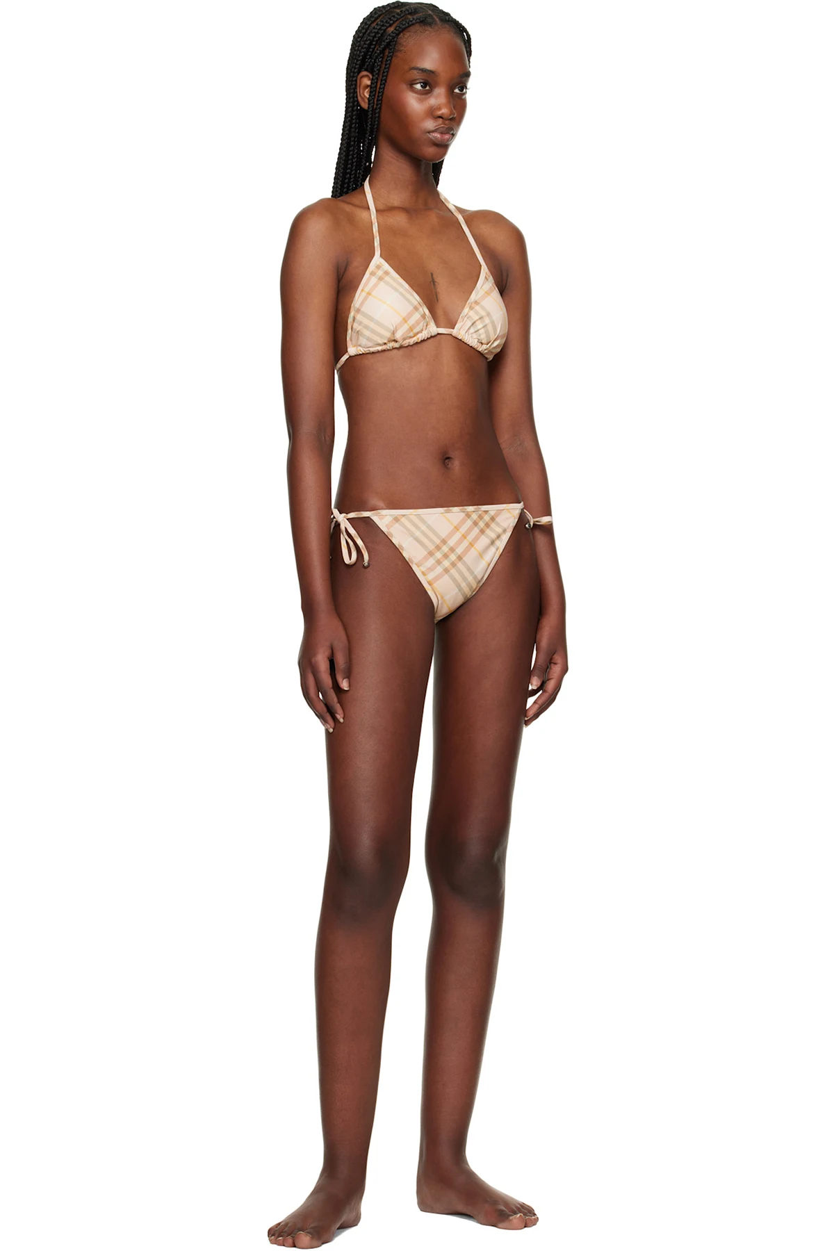 Stretch reused nylon jersey bikini top. Check pattern printed throughout.