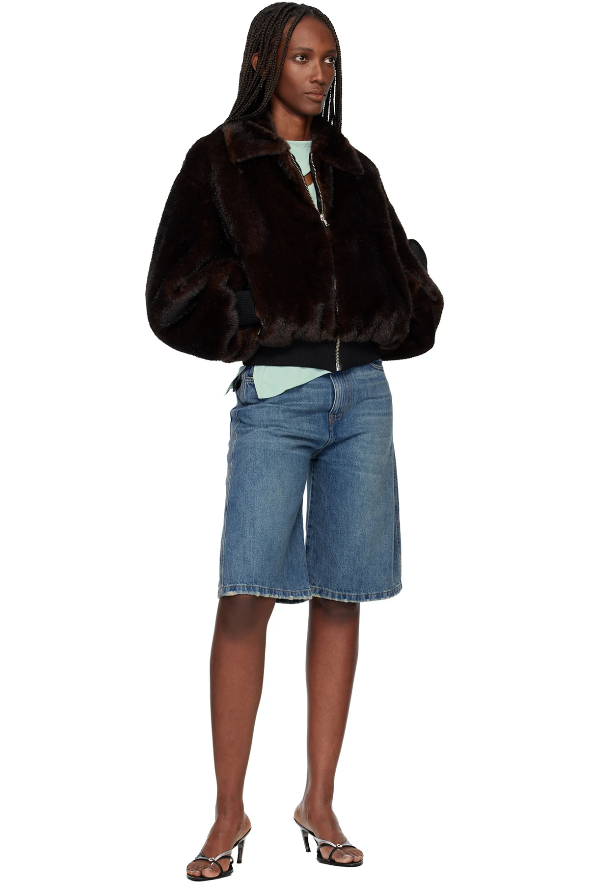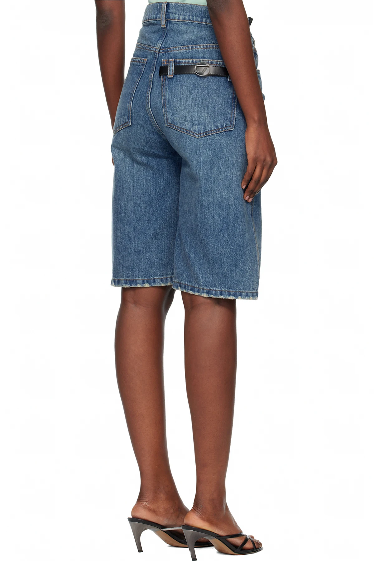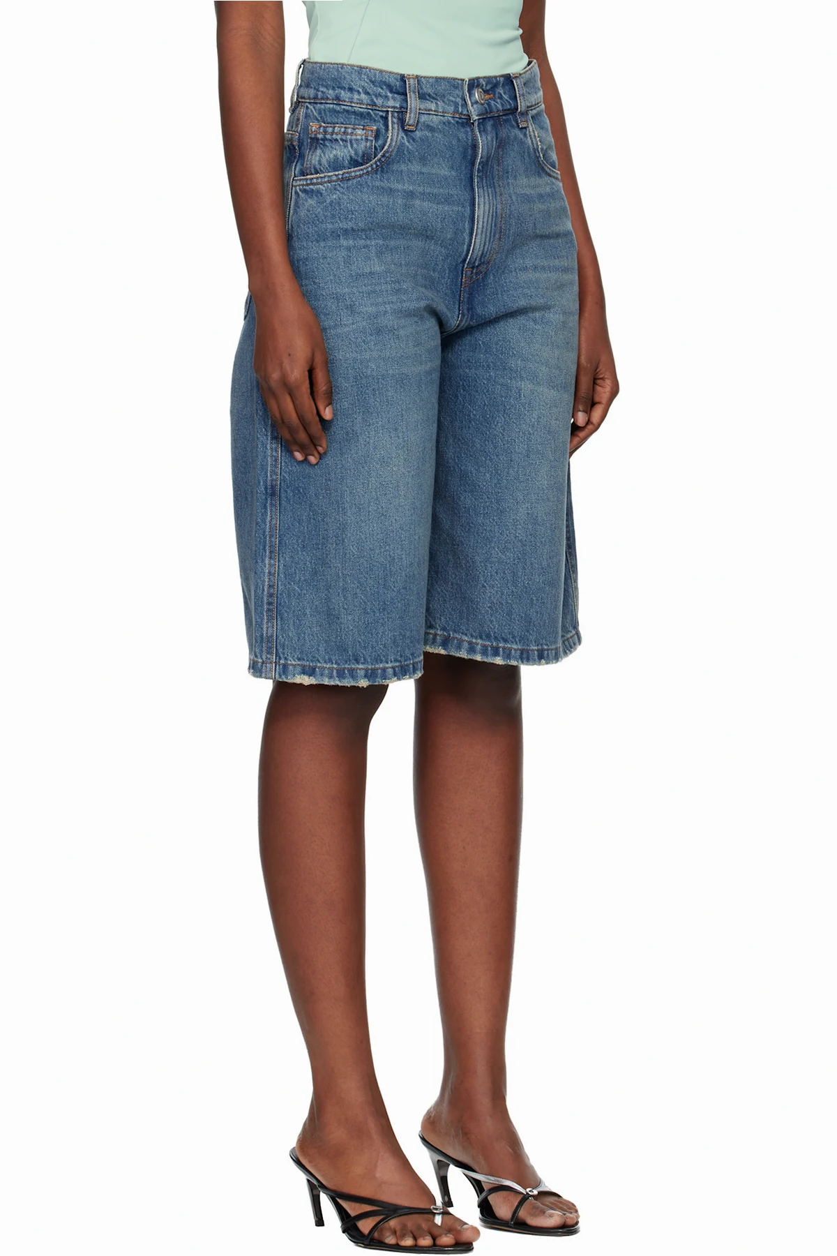 Non-stretch denim shorts.