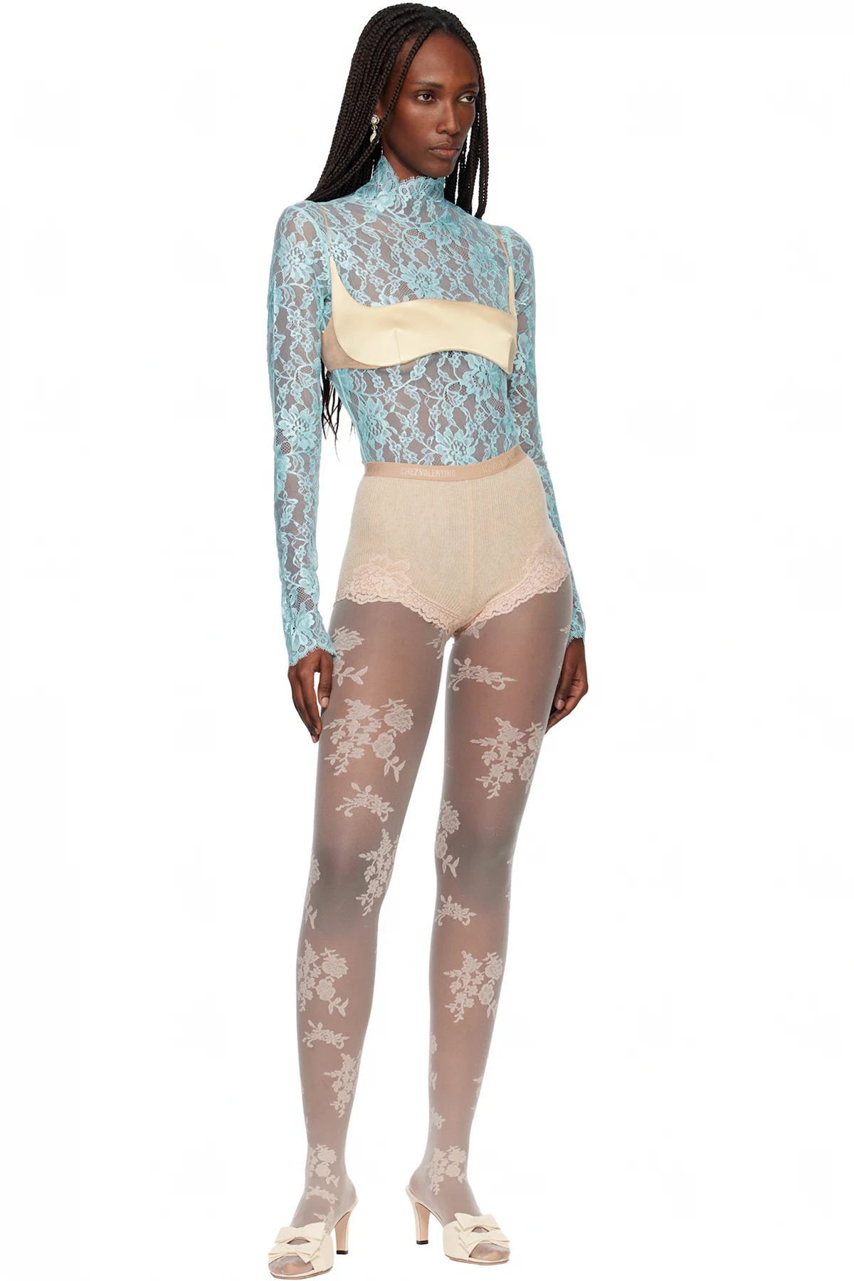 Body: 100% cashmere. Trim: 50% polyamide, 38% cotton, 12% elastane.