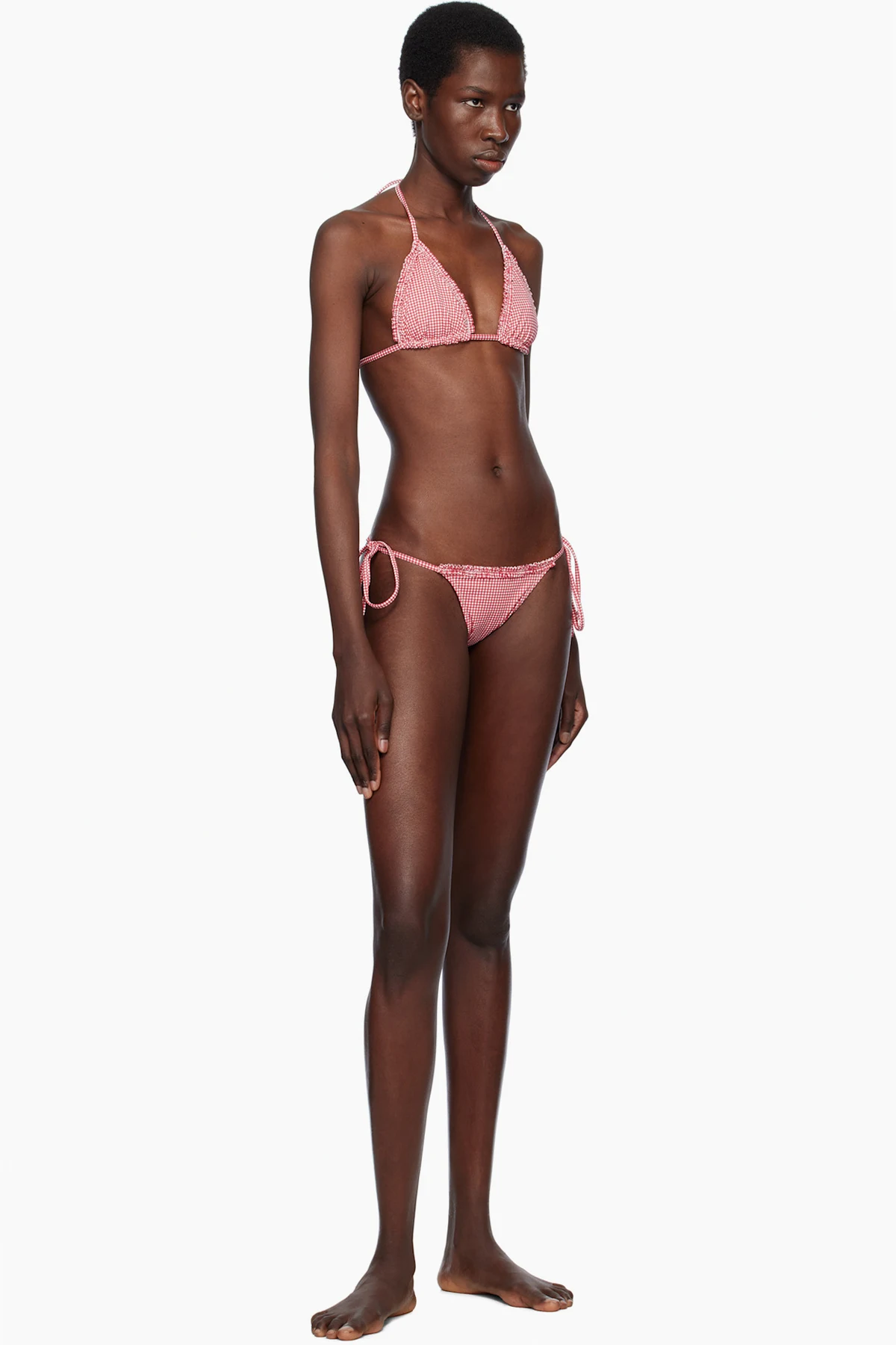 Stretch nylon jersey bikini bottom. Gingham pattern printed throughout.
