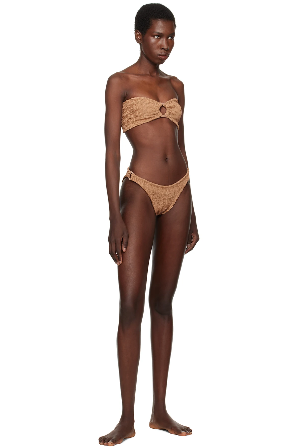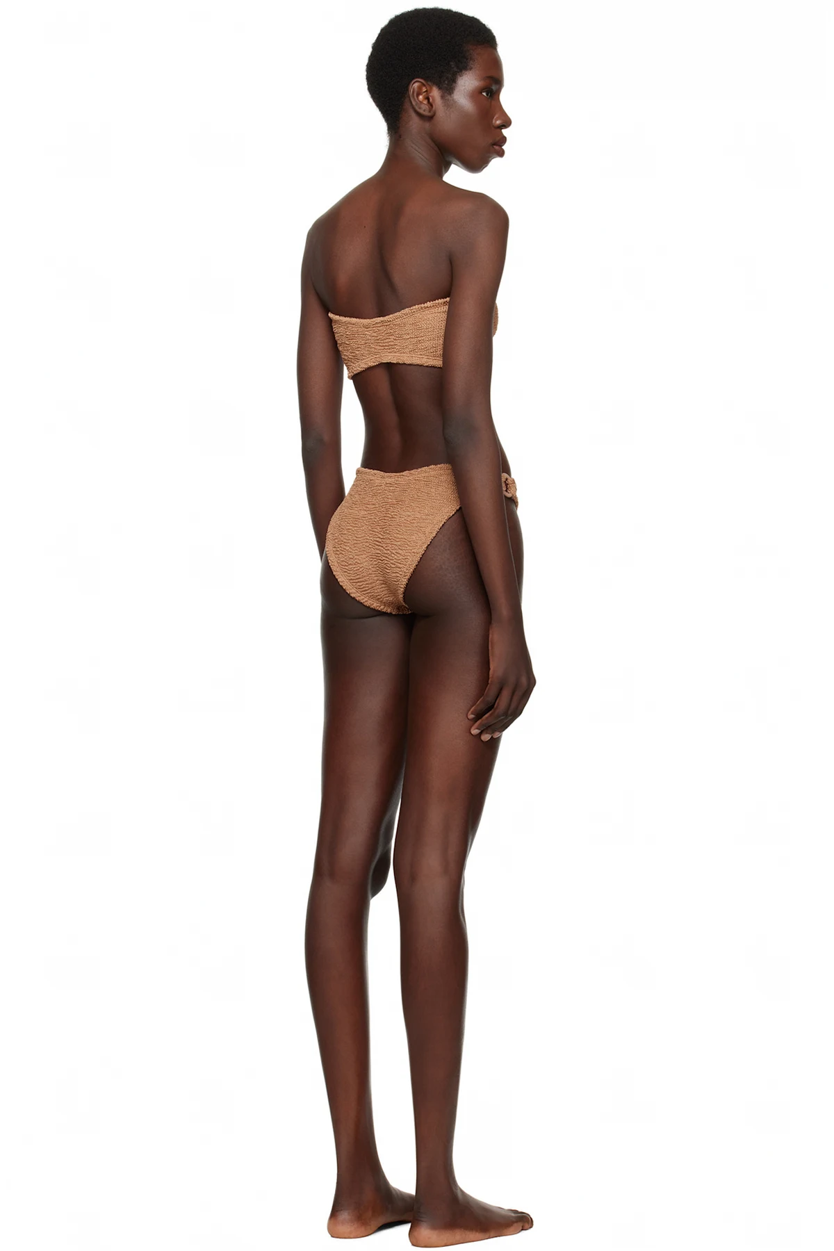 Shirred stretch nylon jersey bandeau-style bikini top.