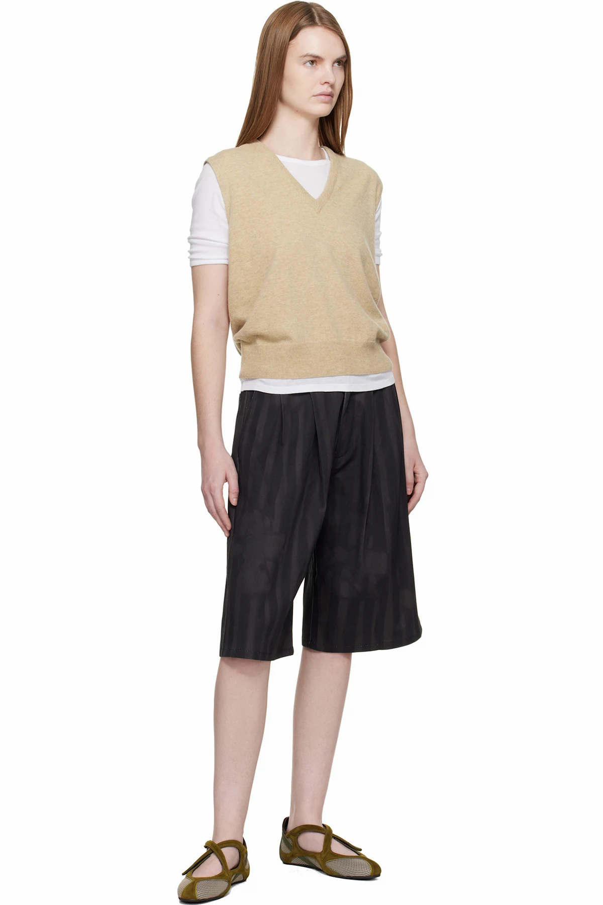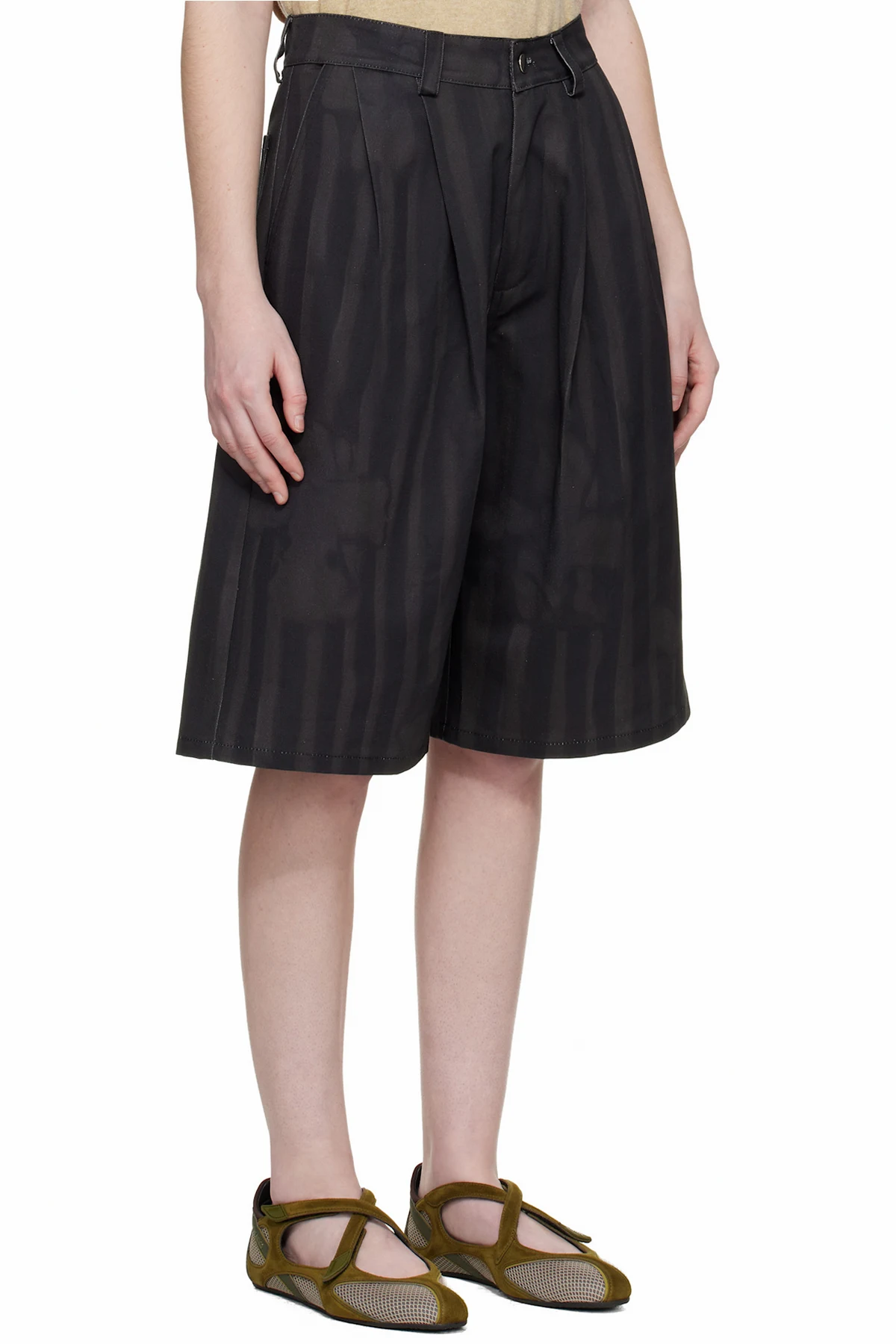 · Pleats at front waistband