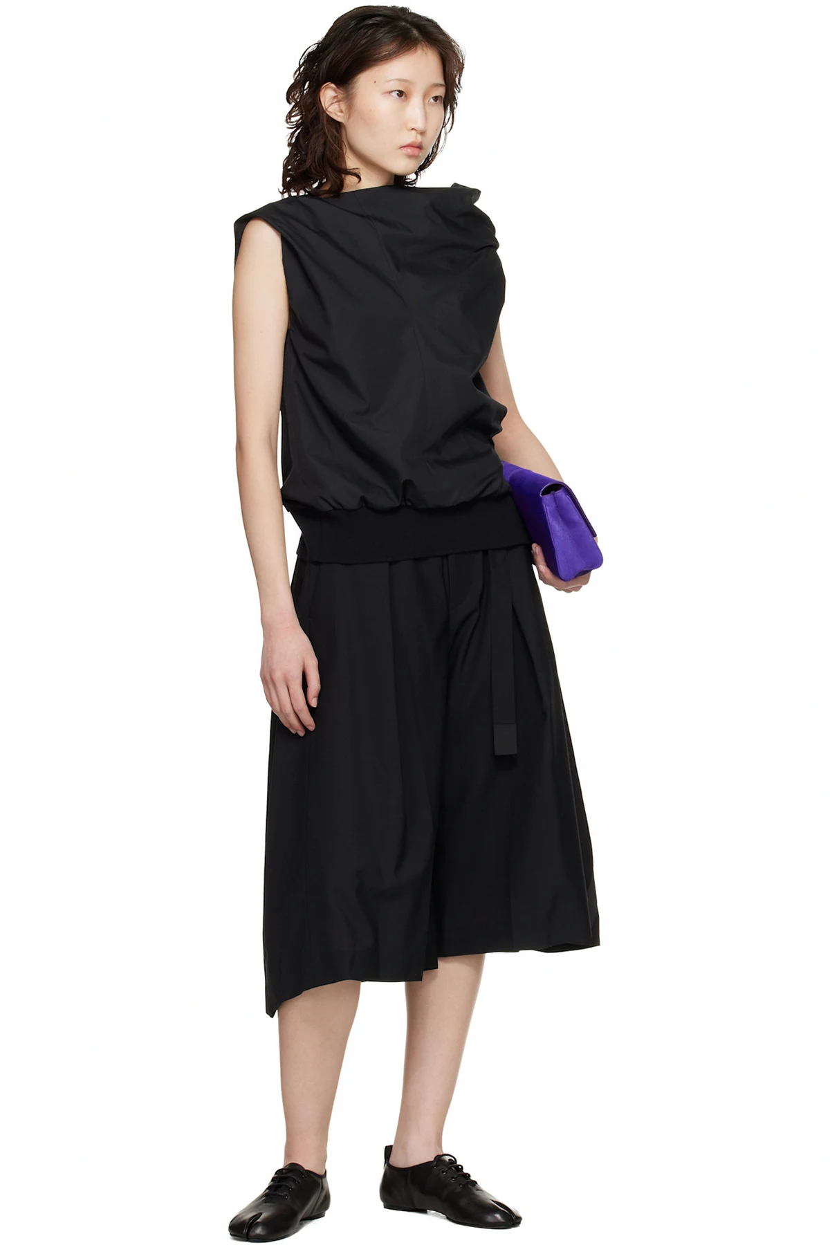 · Pleats at front and back