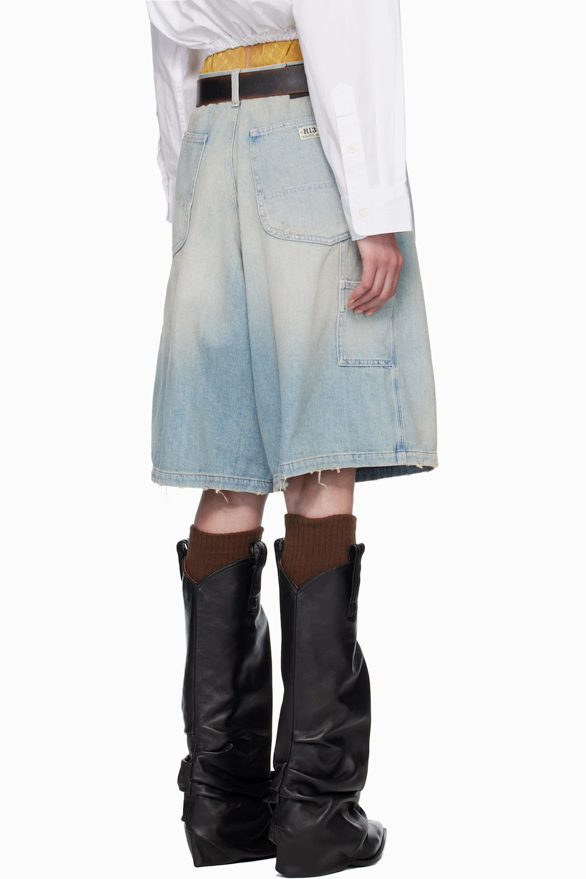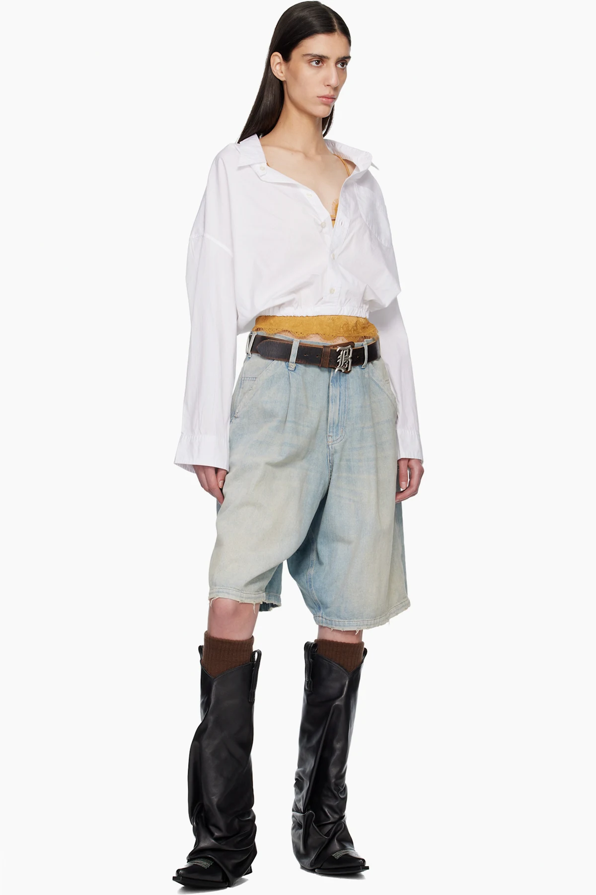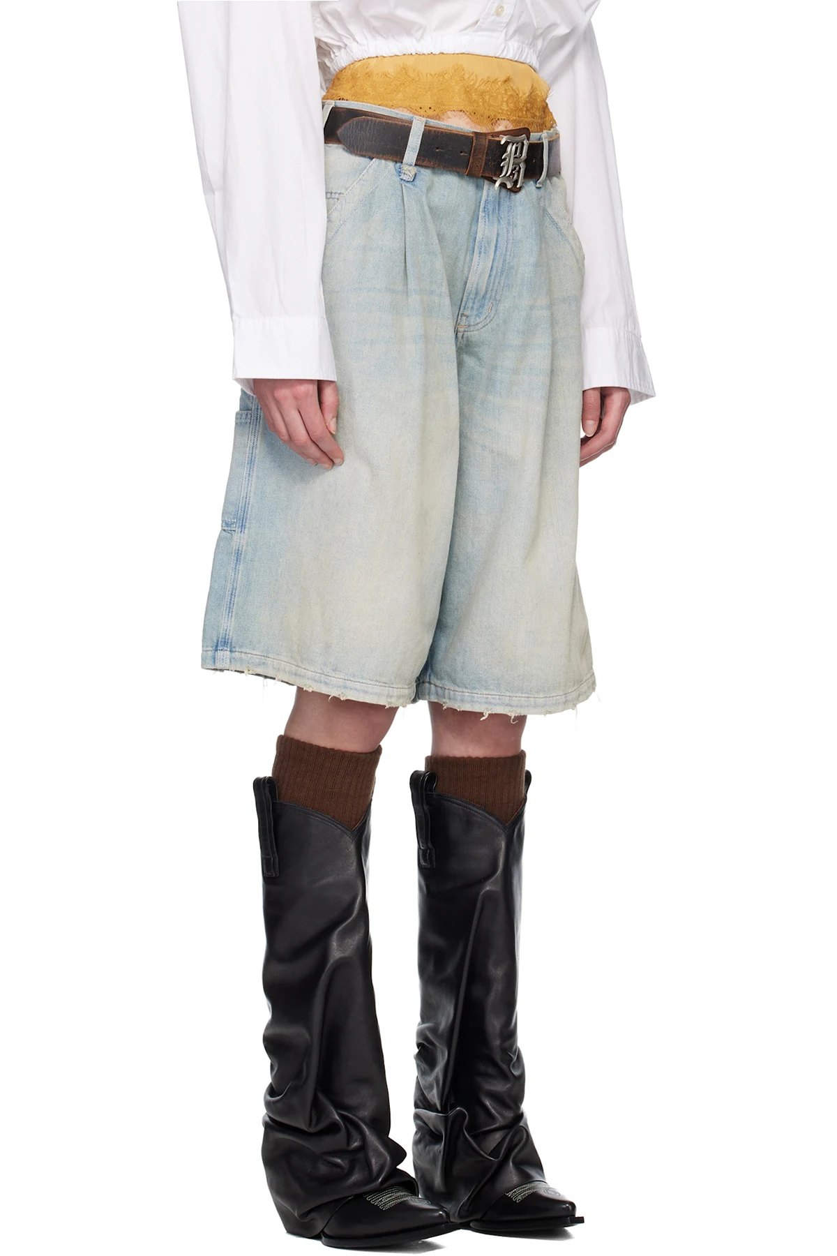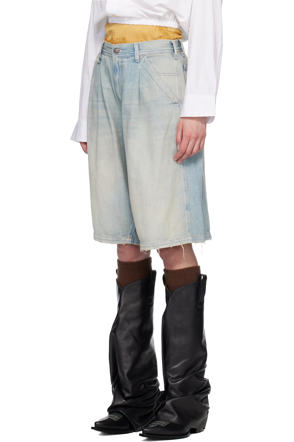Non-stretch denim shorts.
