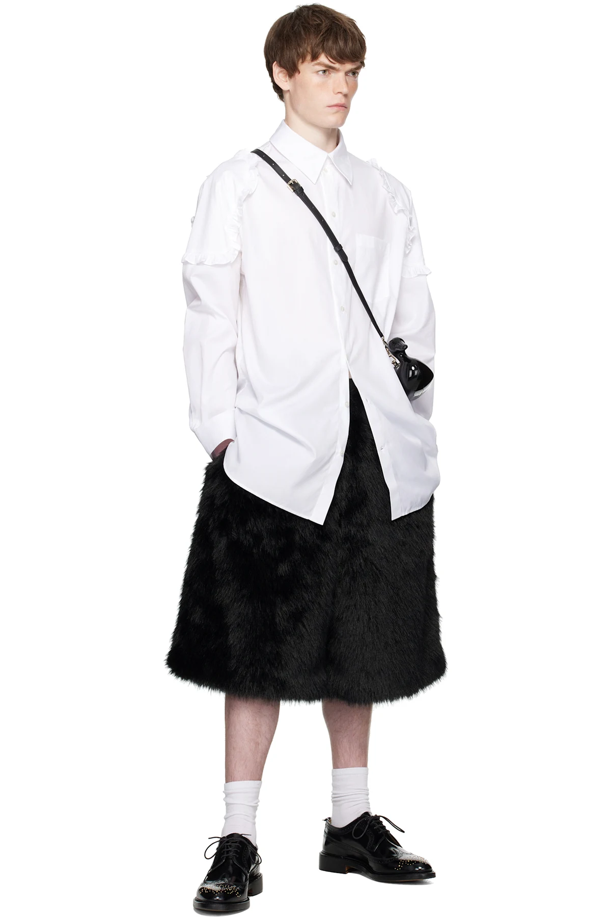 Faux-fur shorts.