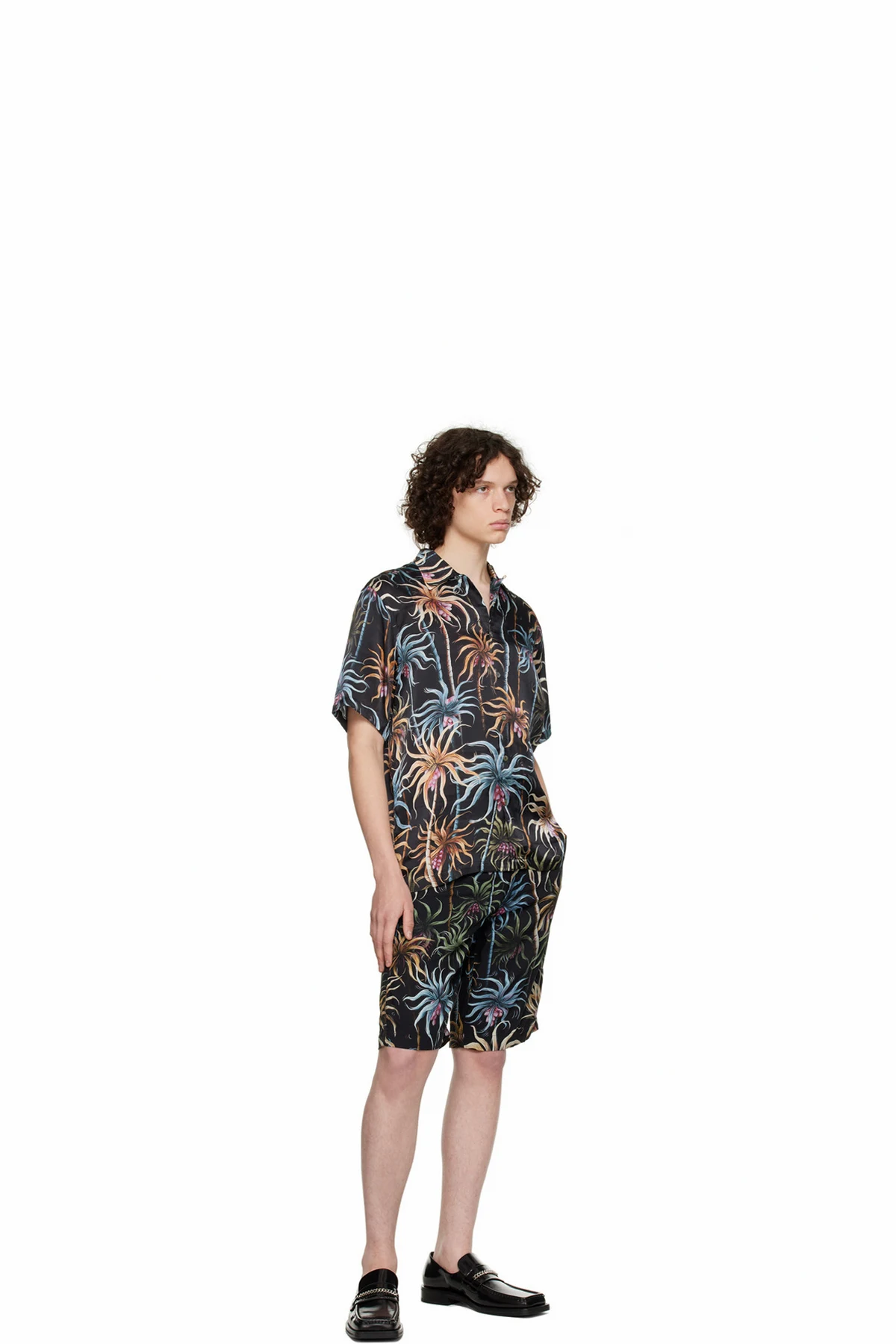 Relaxed-fit rayon twill shorts. Graphic pattern printed throughout.
