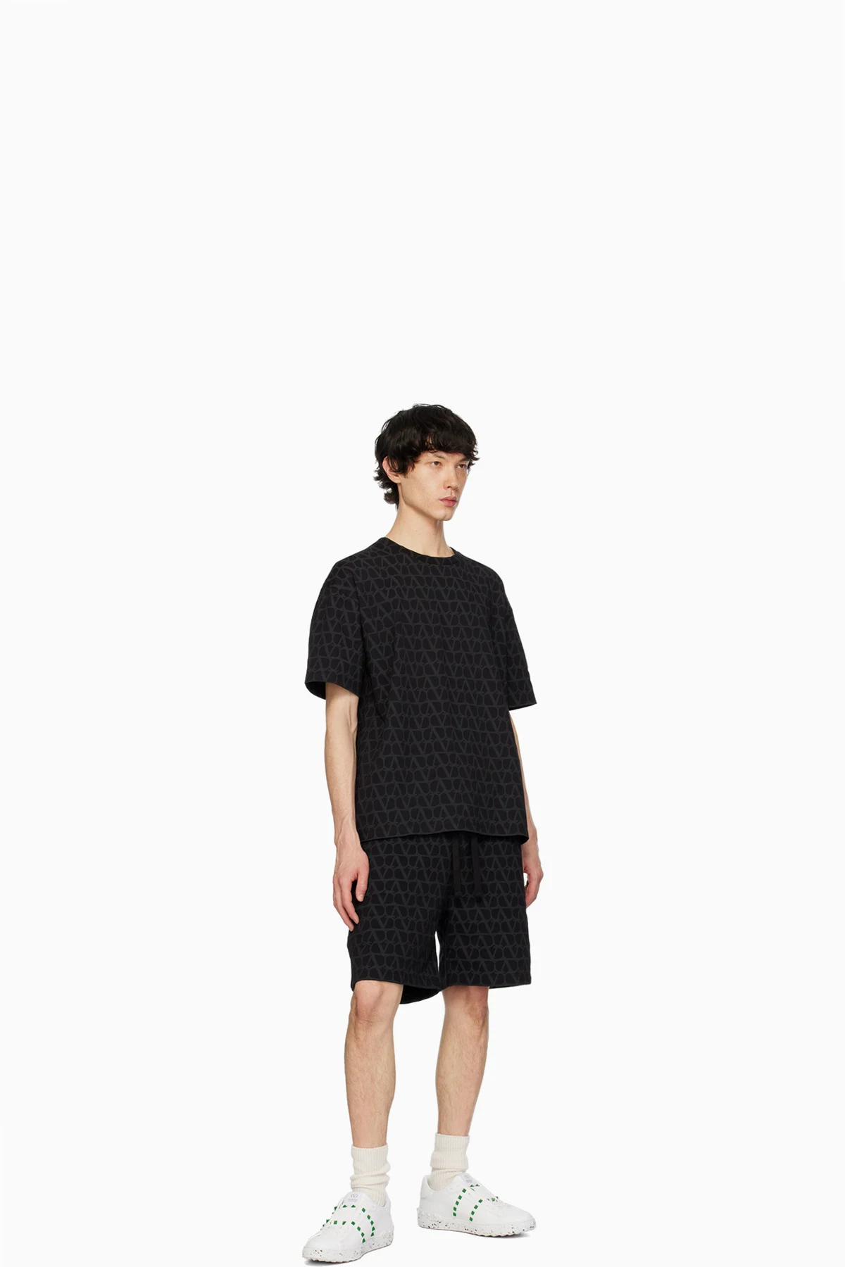 Cotton fleece shorts. Logo pattern printed throughout.