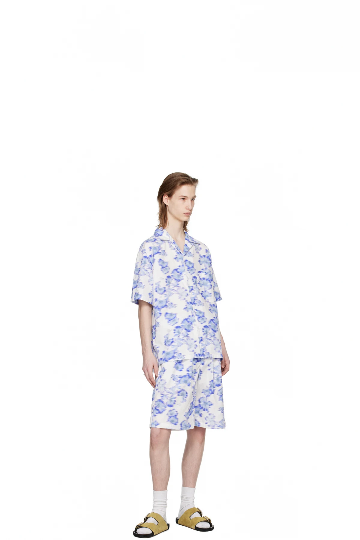 Cotton poplin shorts. Graphic pattern printed throughout.