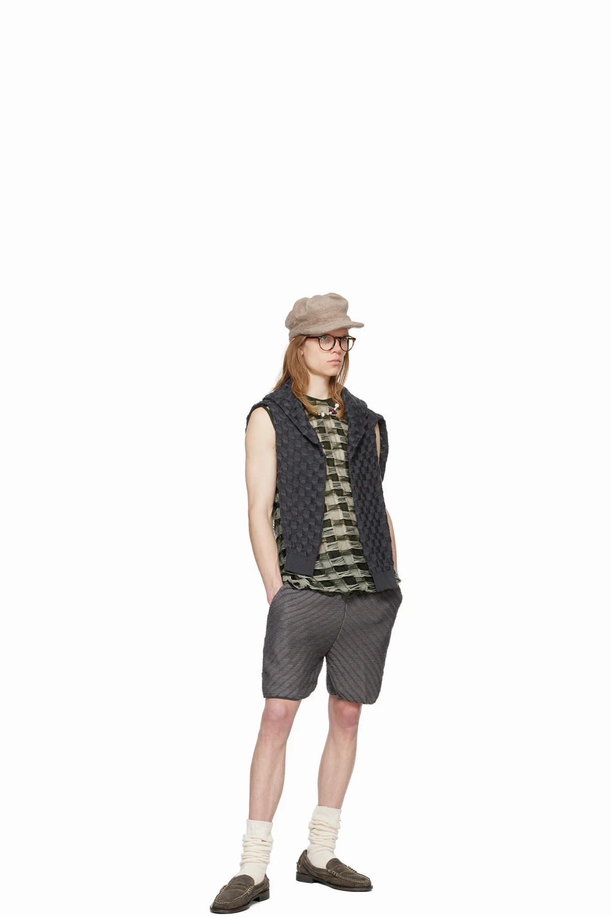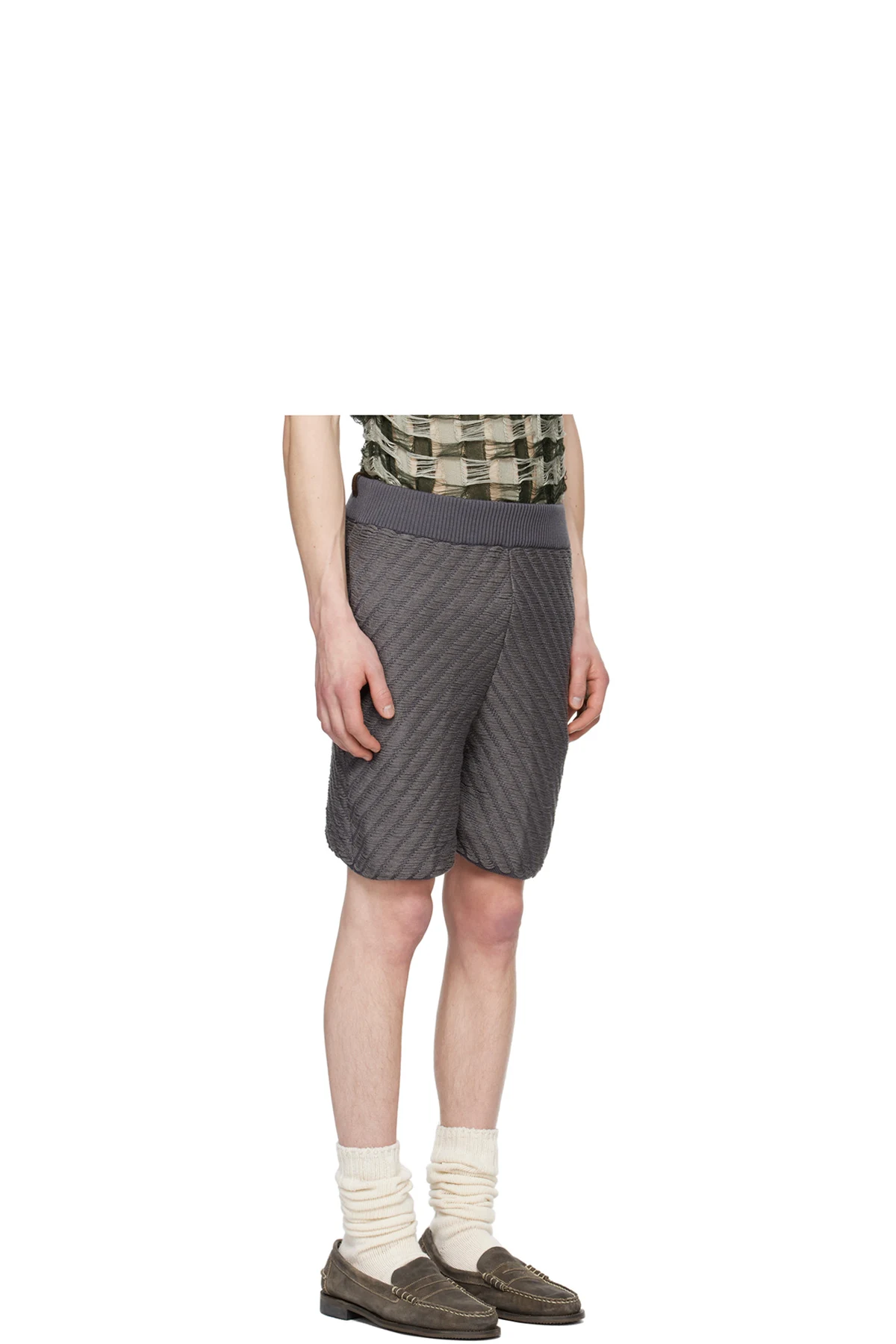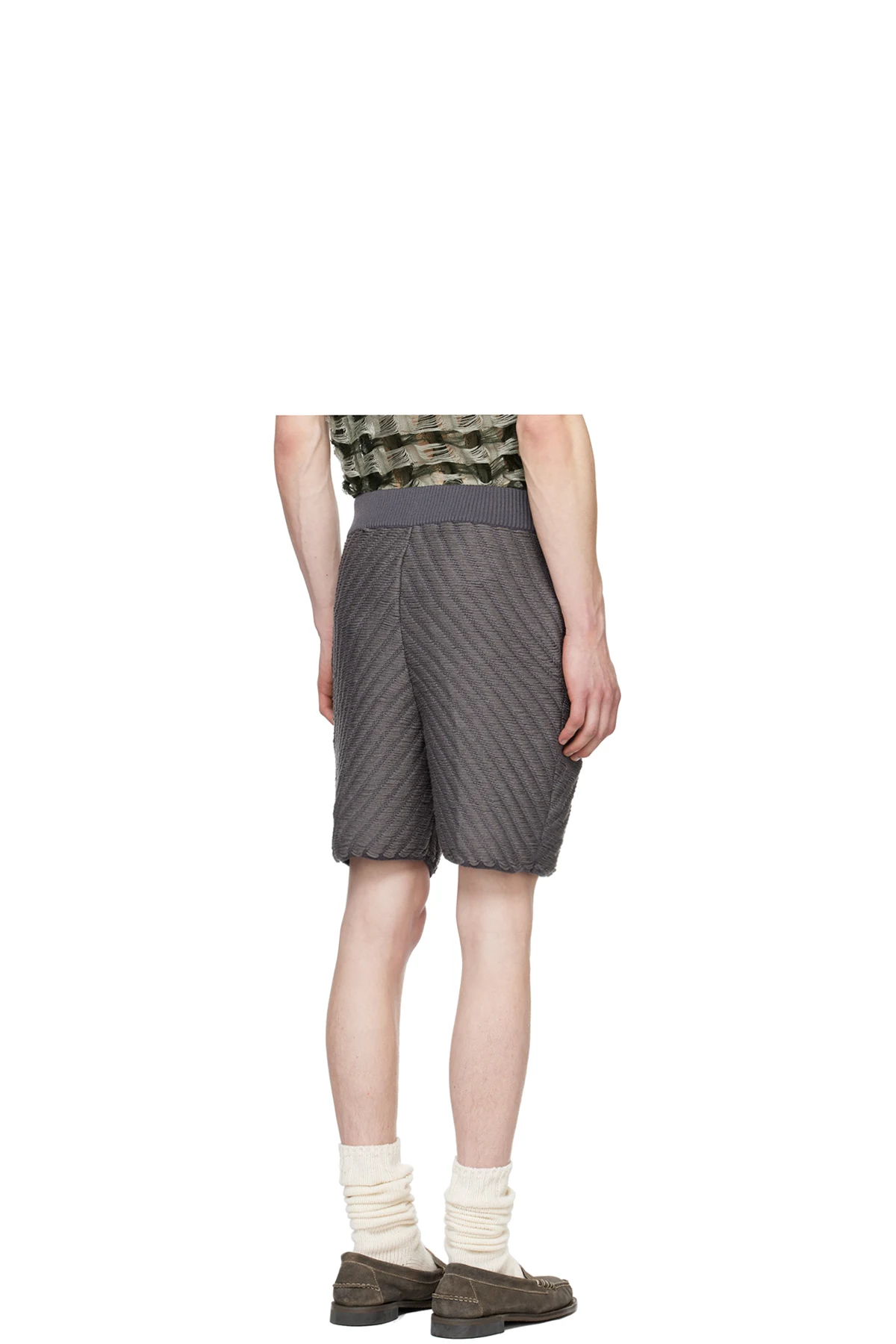 Knit rayon shorts. Laddering and chevron pattern throughout.