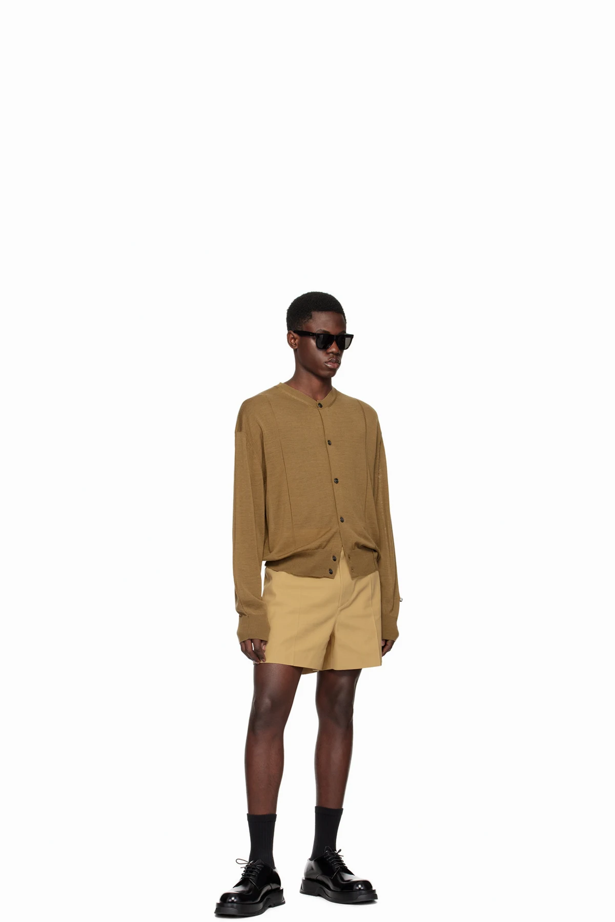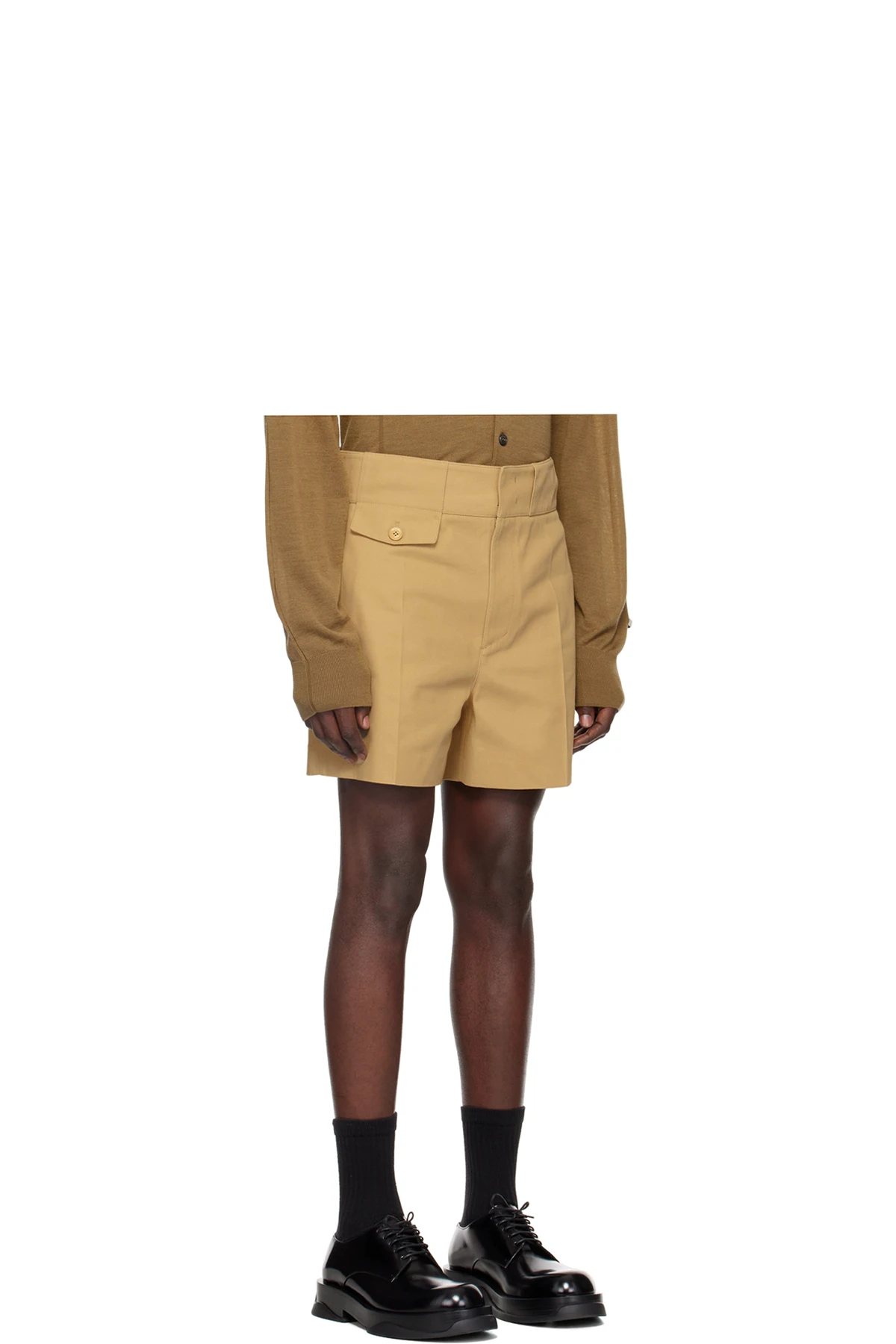 Polyester-blend drill shorts.