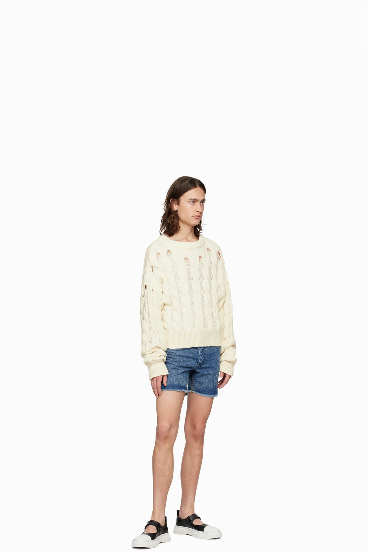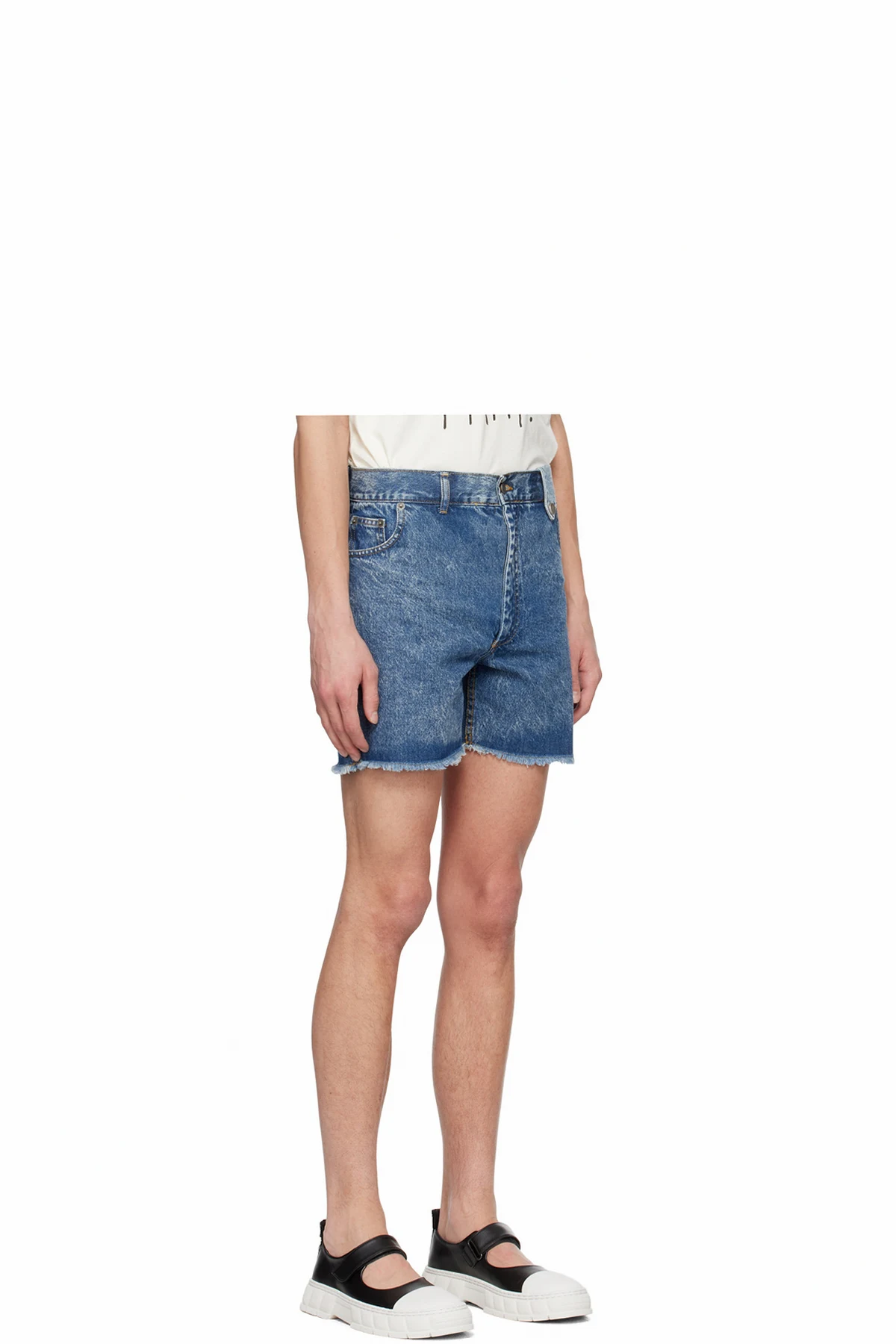 Acid-washed non-stretch denim shorts. Fading throughout.