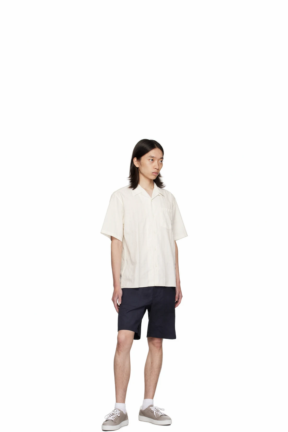 Relaxed-fit wave-dyed PFC-free DWR-coated water-repellent nylon taffeta shorts.