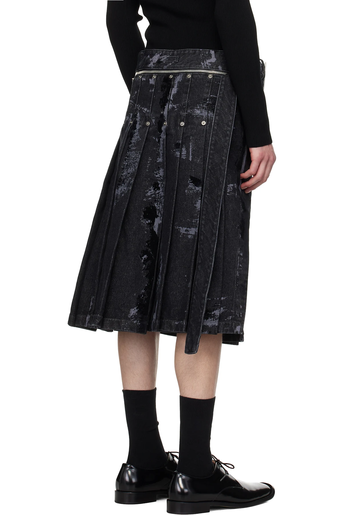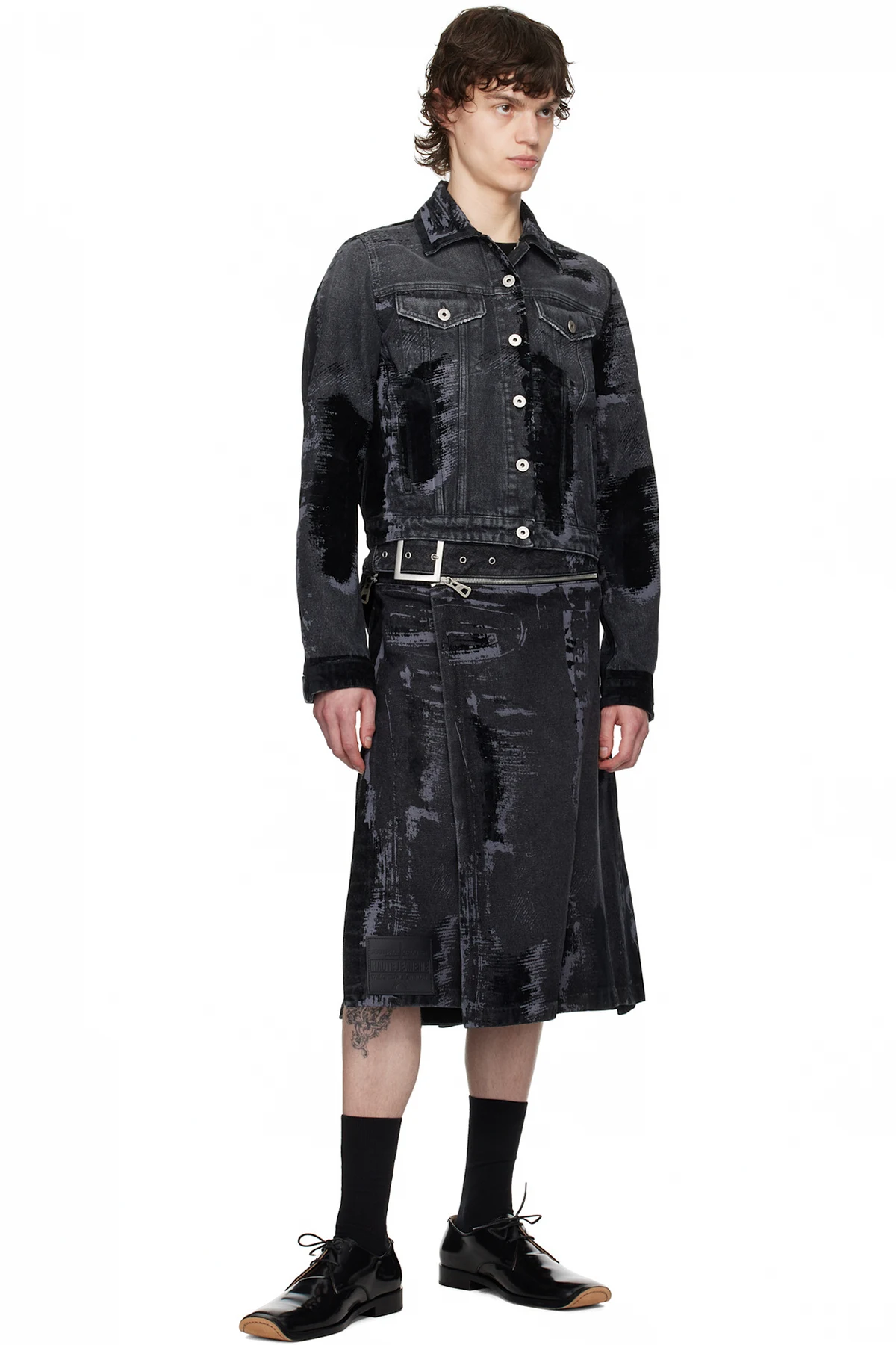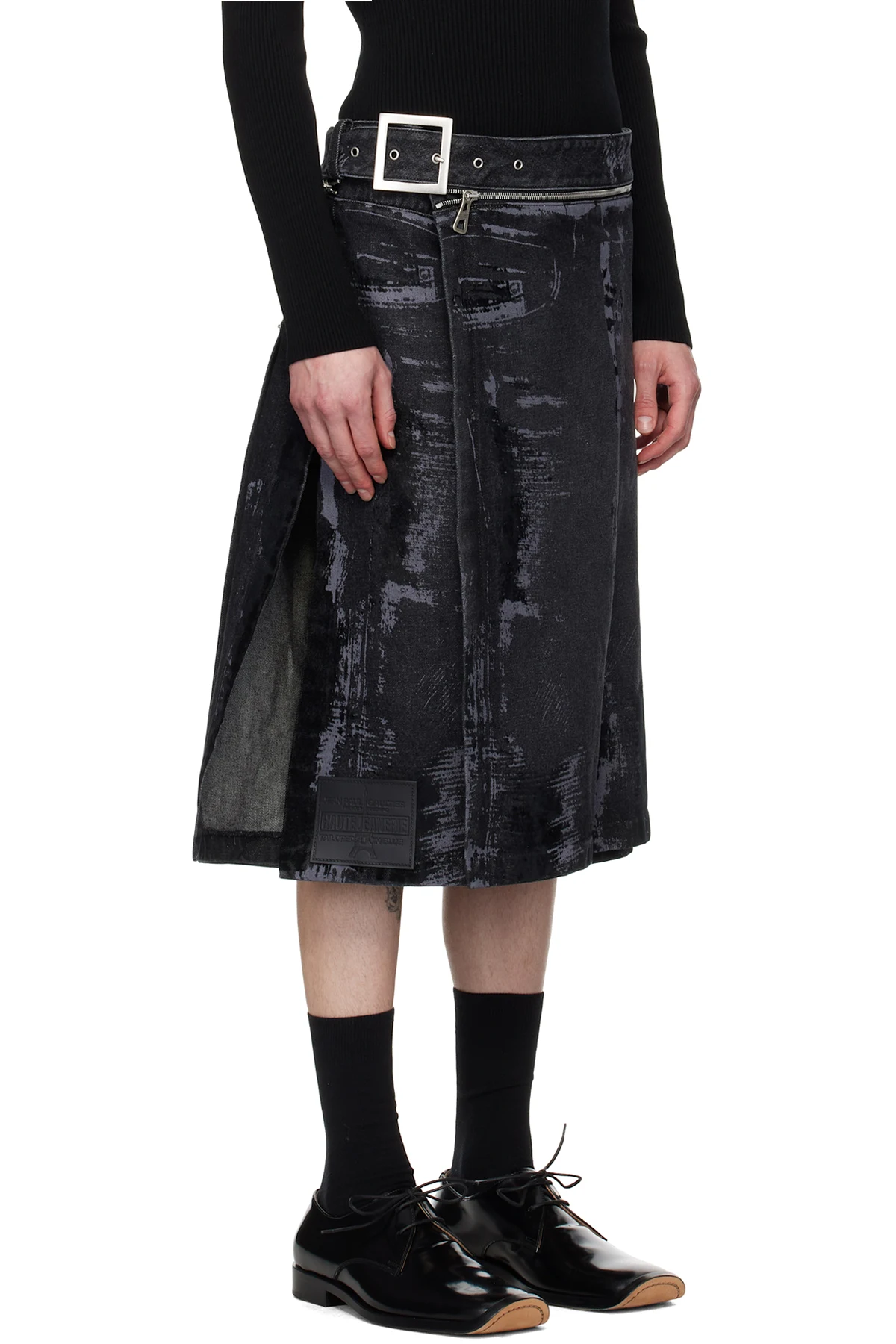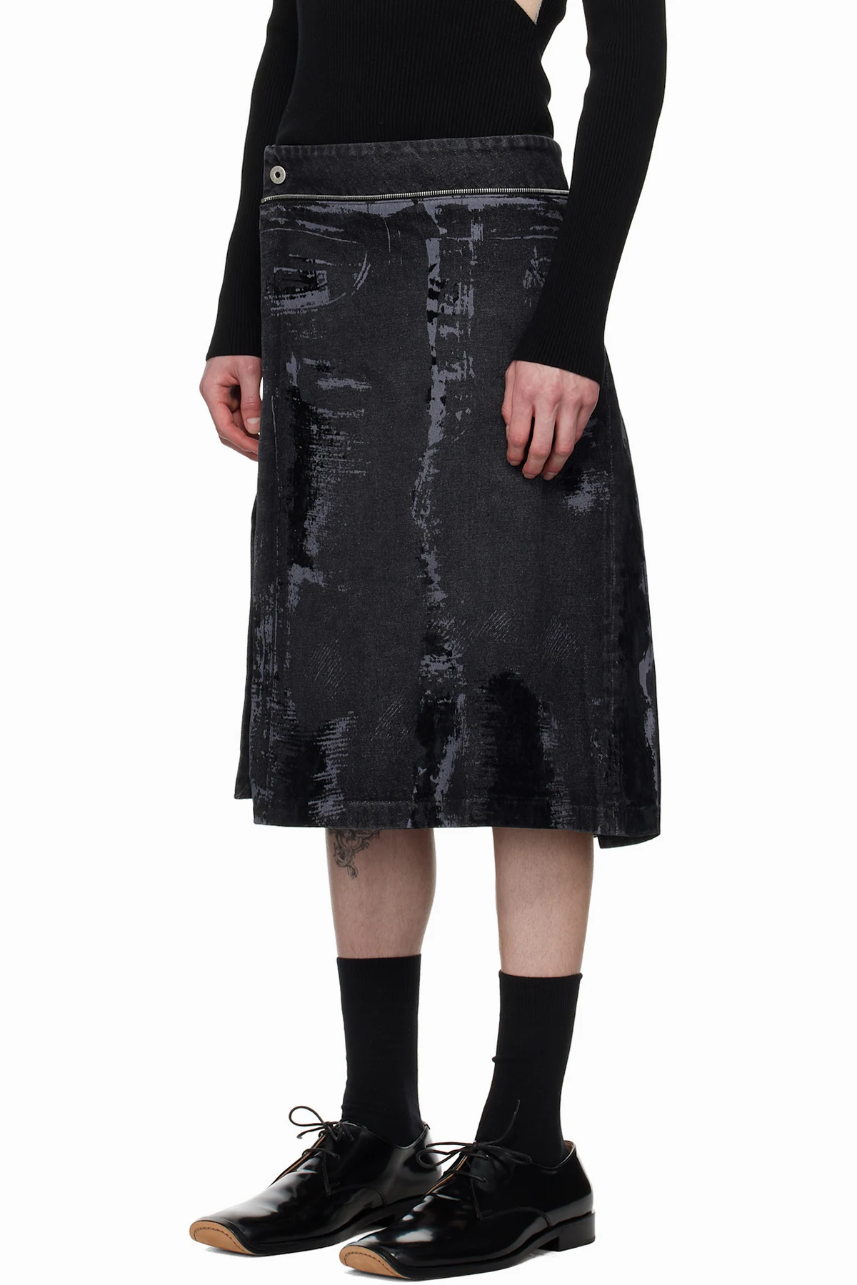 Loose-fit non-stretch denim skirt. Flocked detailing, fading, and subtle distressing throughout.