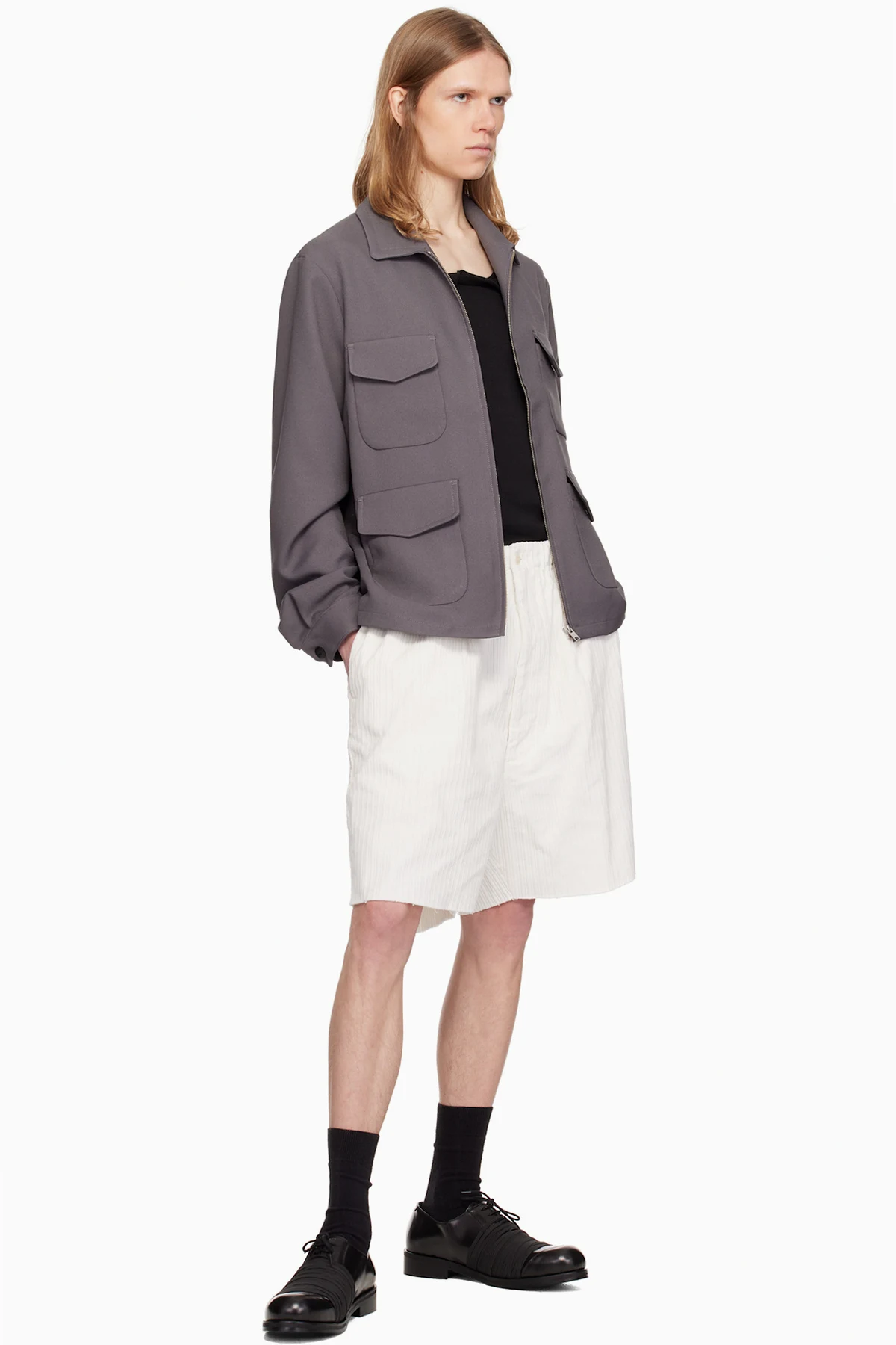 White Corduroy Worker Shorts
