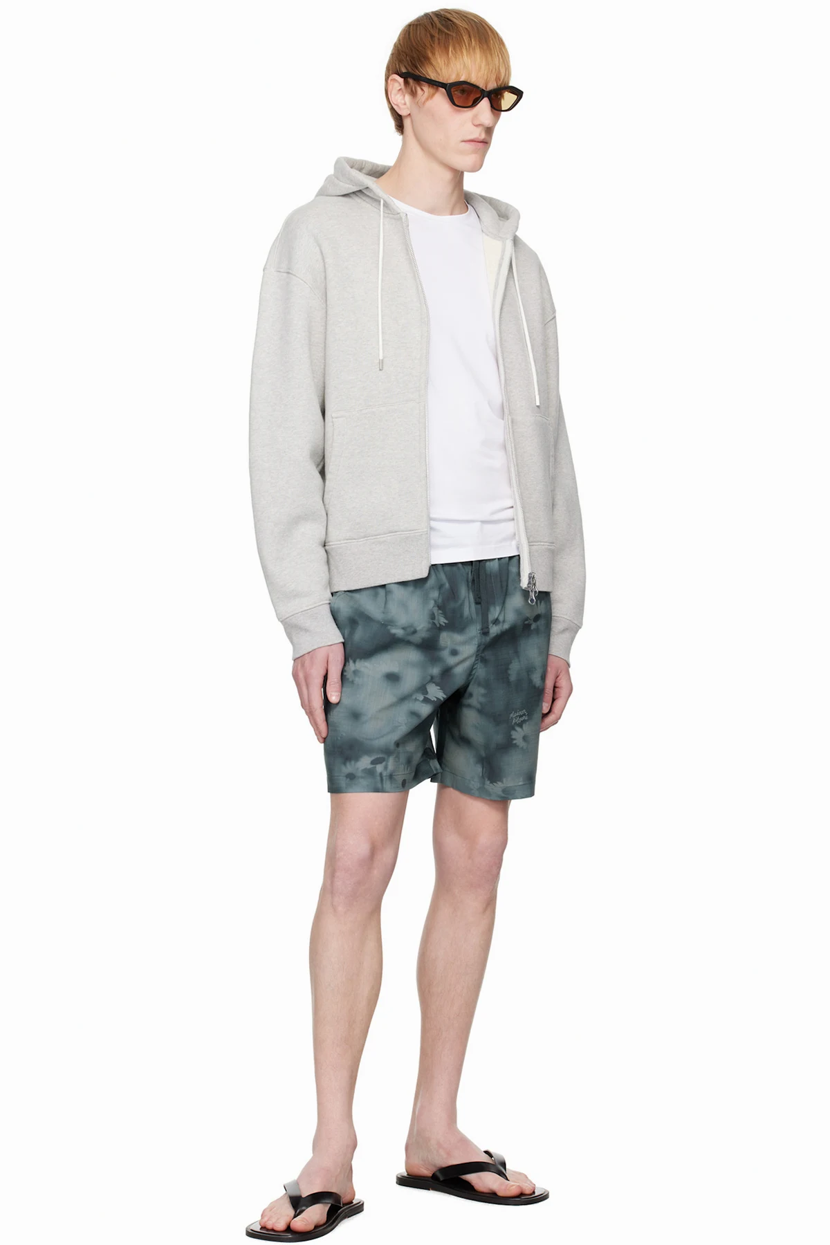 Plain-woven slub cotton shorts. Floral pattern printed throughout.