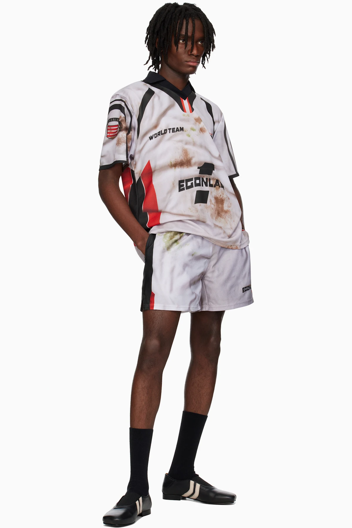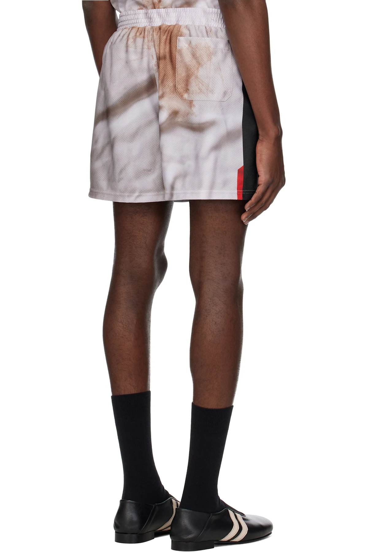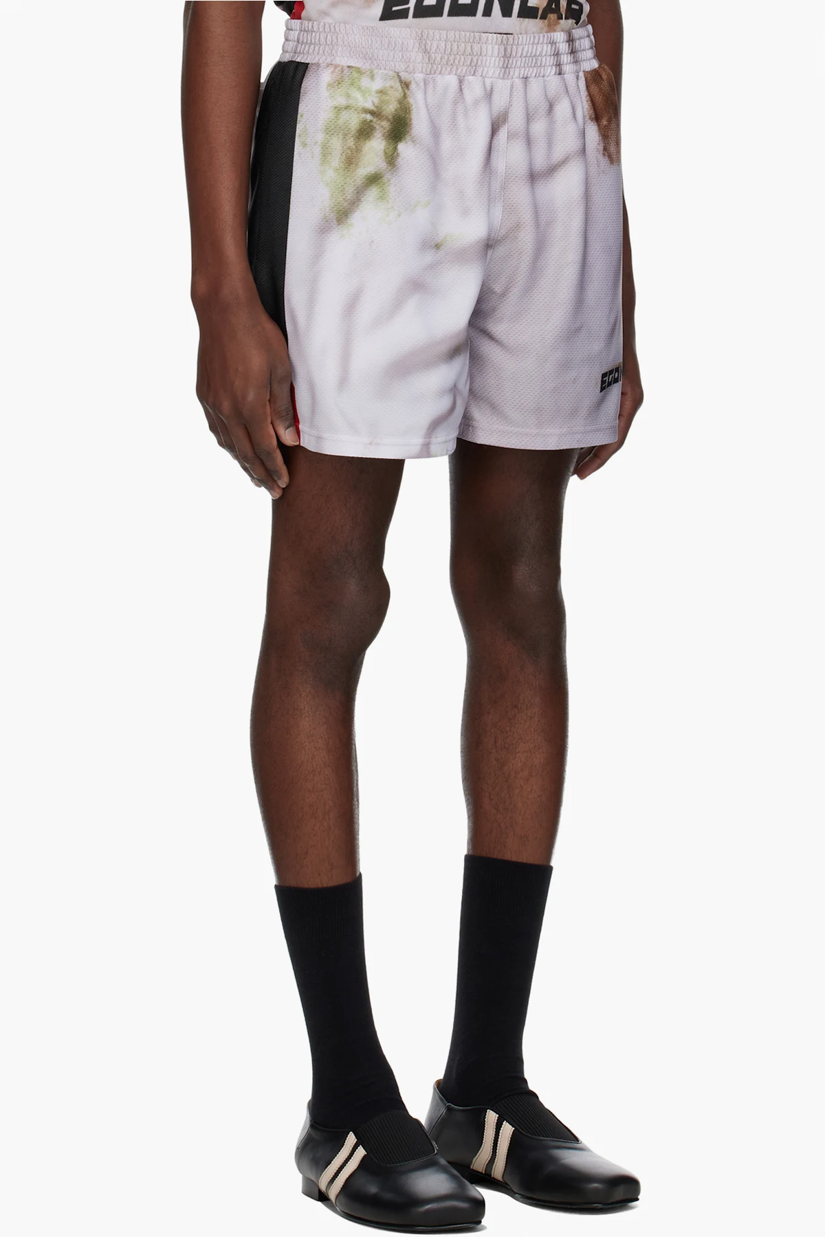 Polyester mesh shorts. Graphic pattern printed throughout.