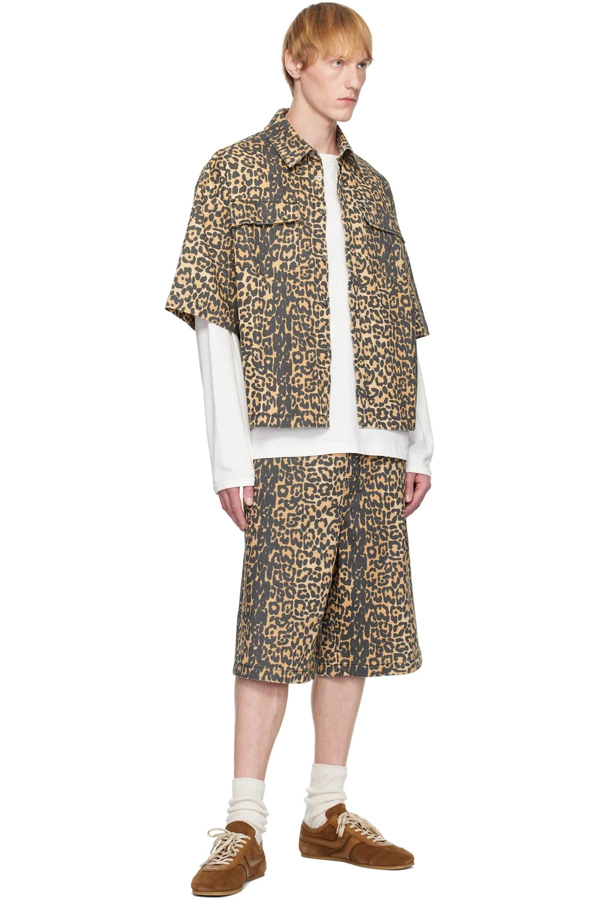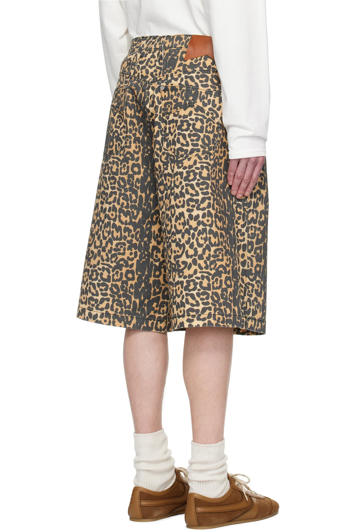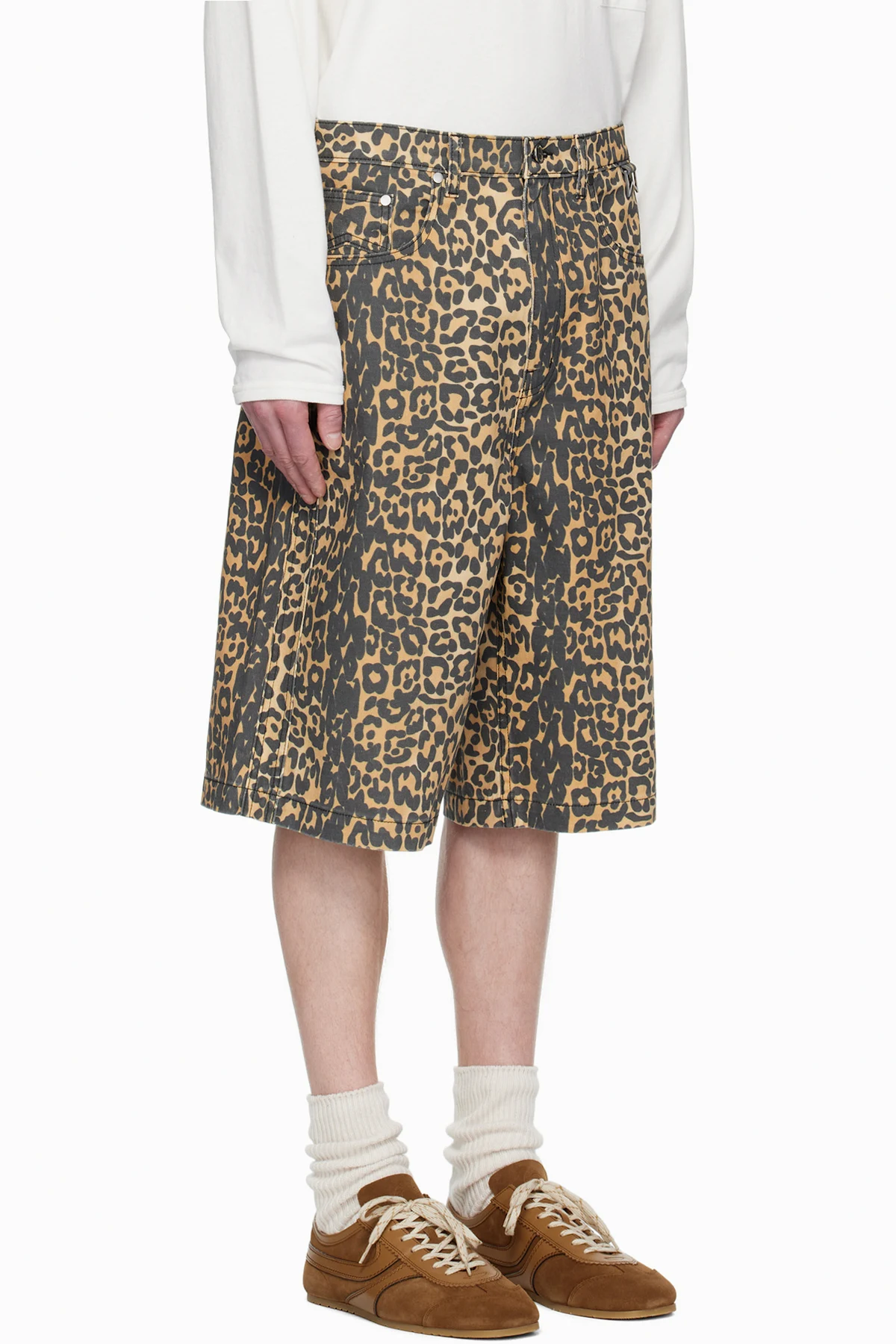 Non-stretch denim shorts. Leopard patten printed throughout.