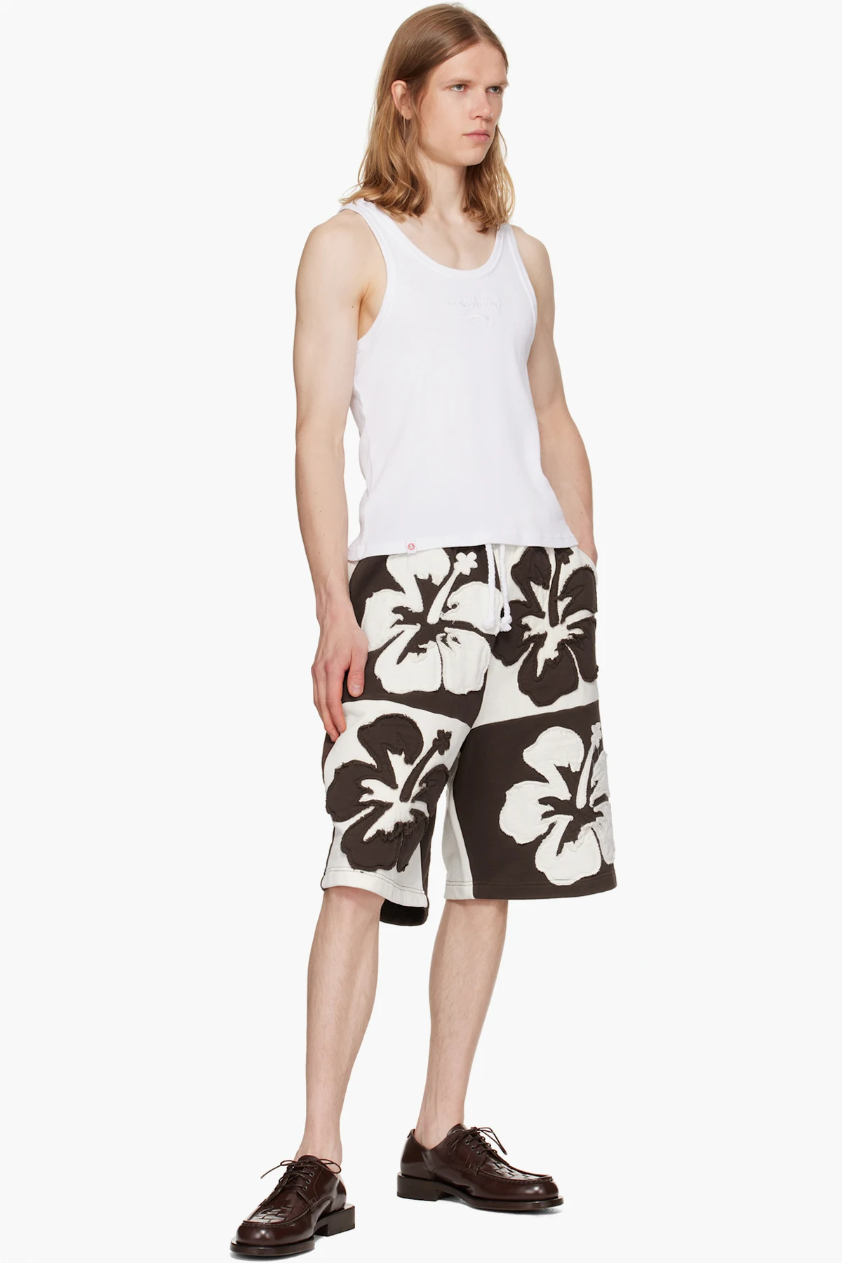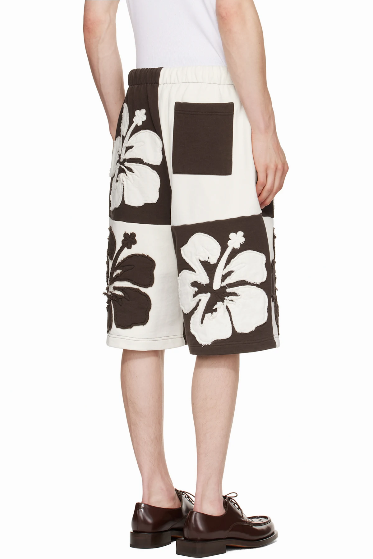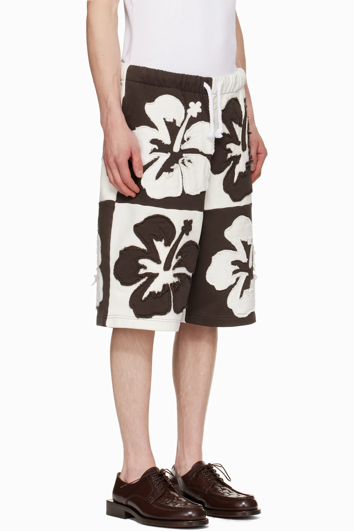Loose-fit French terry shorts. Floral appliqués throughout.