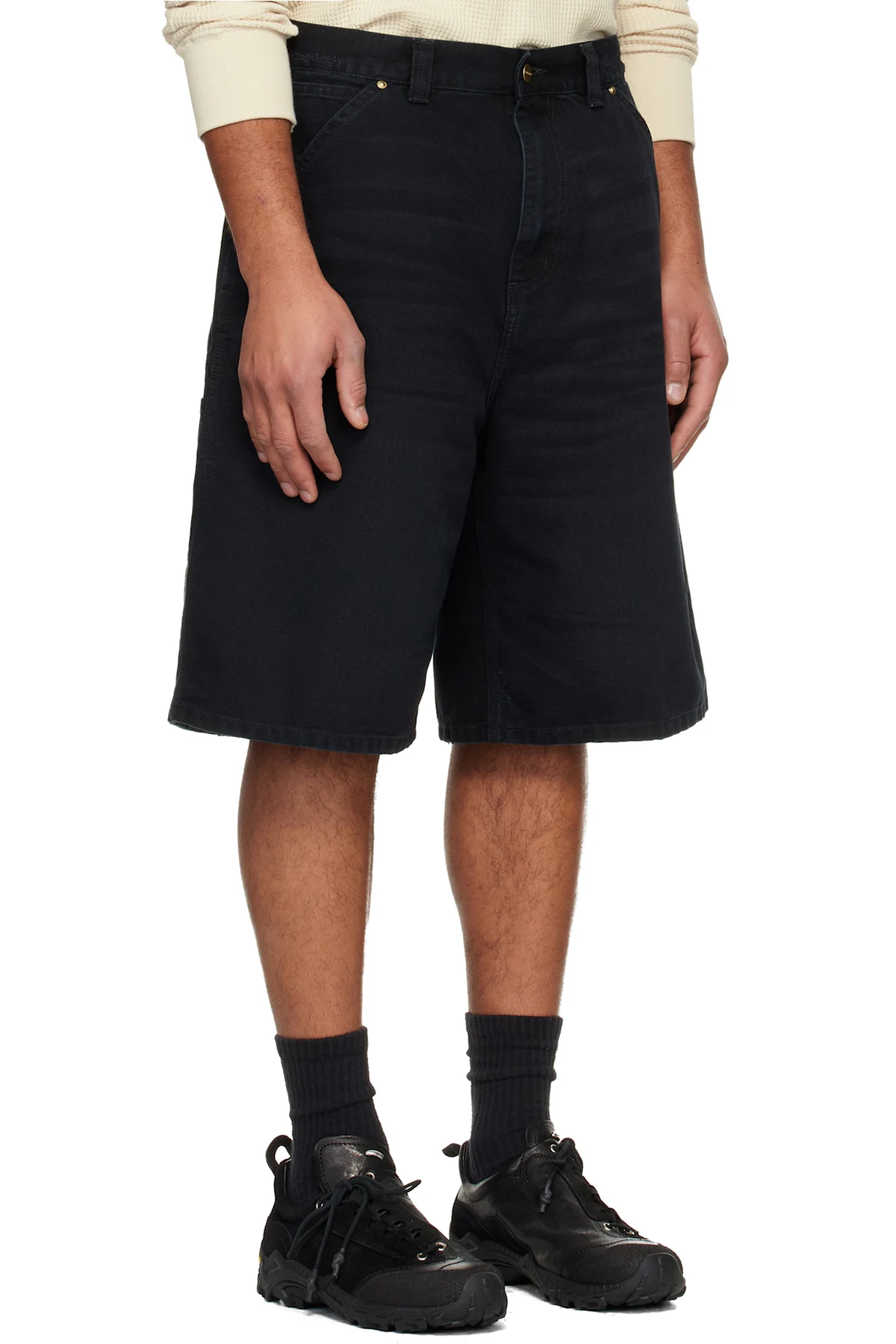 Non-stretch organic cotton denim shorts.