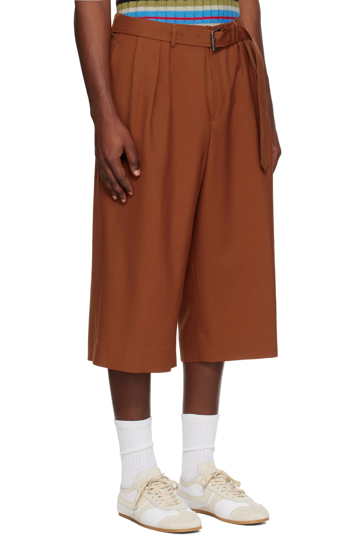 Orange Belted Wool Mohair Shorts