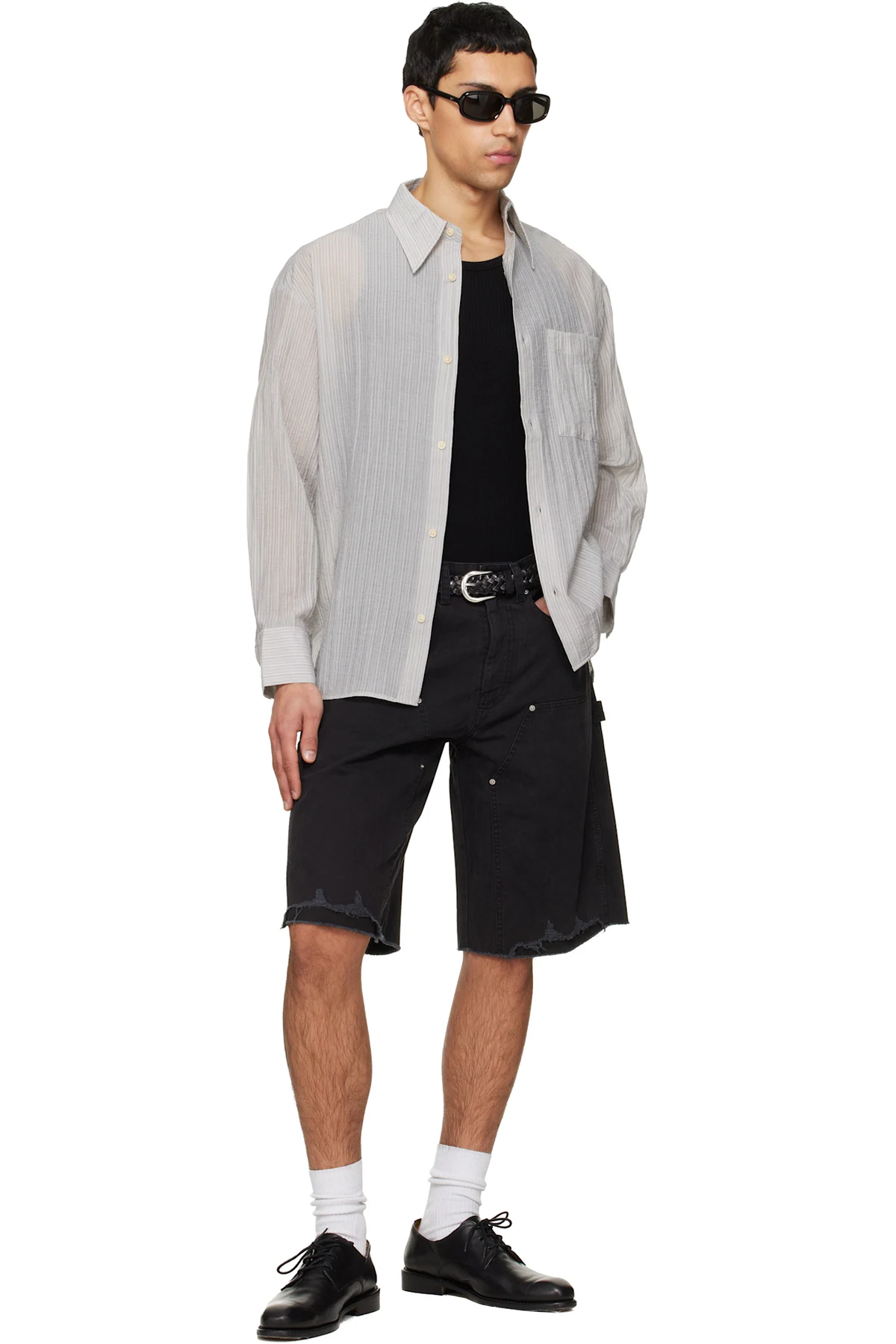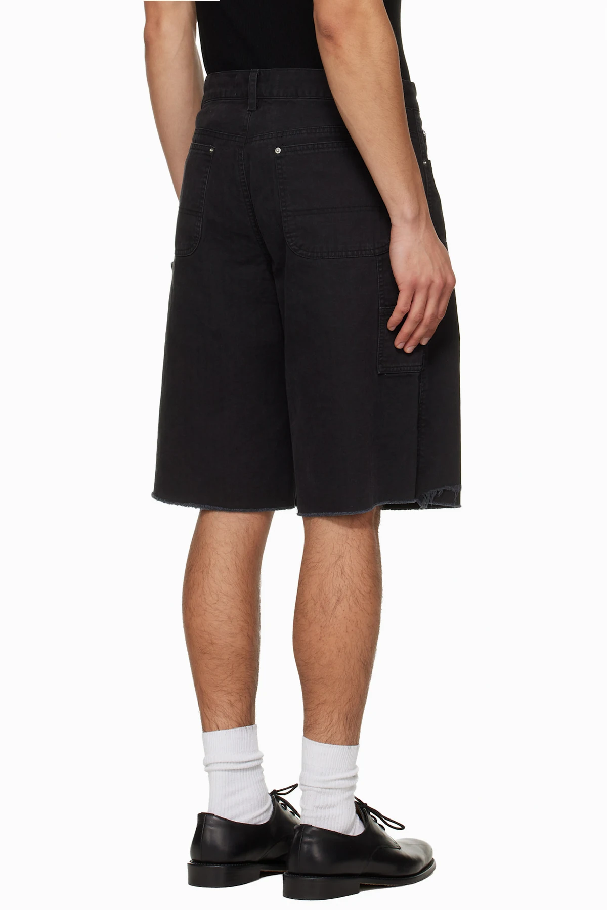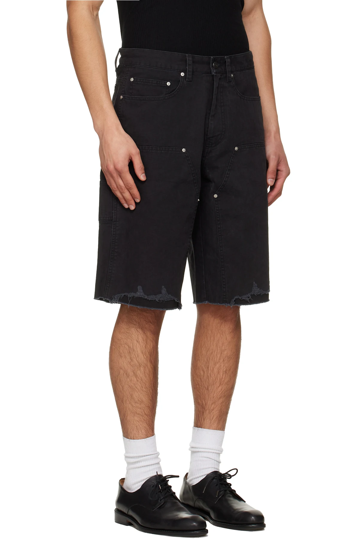 Black Hand Distressed HBT Double Knee Shorts