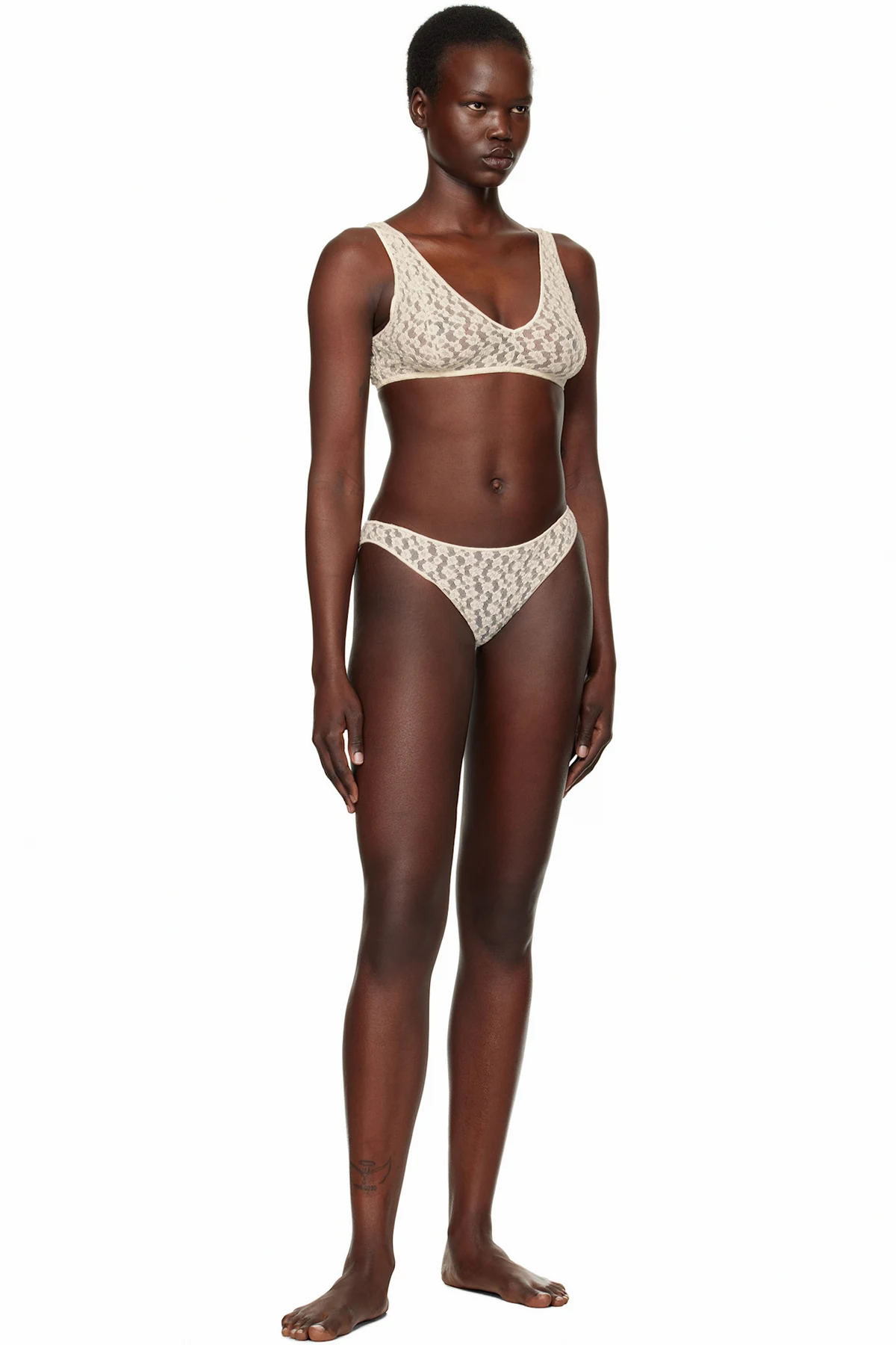 Sheer stretch nylon- and organic cotton-blend lace briefs. GOTS-, Oeko-Tex-, and OCS 100-certified.