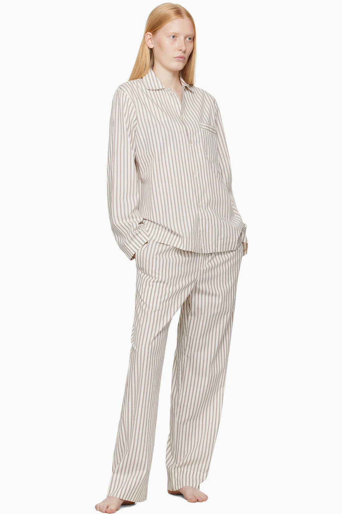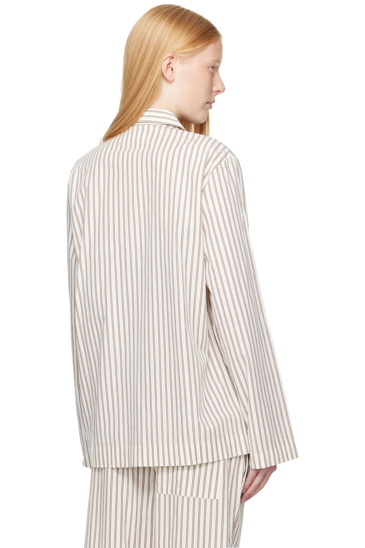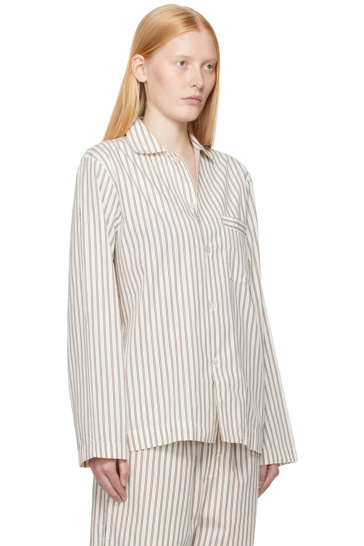Off-White & Brown Poplin Long-Sleeved Pyjama Shirt