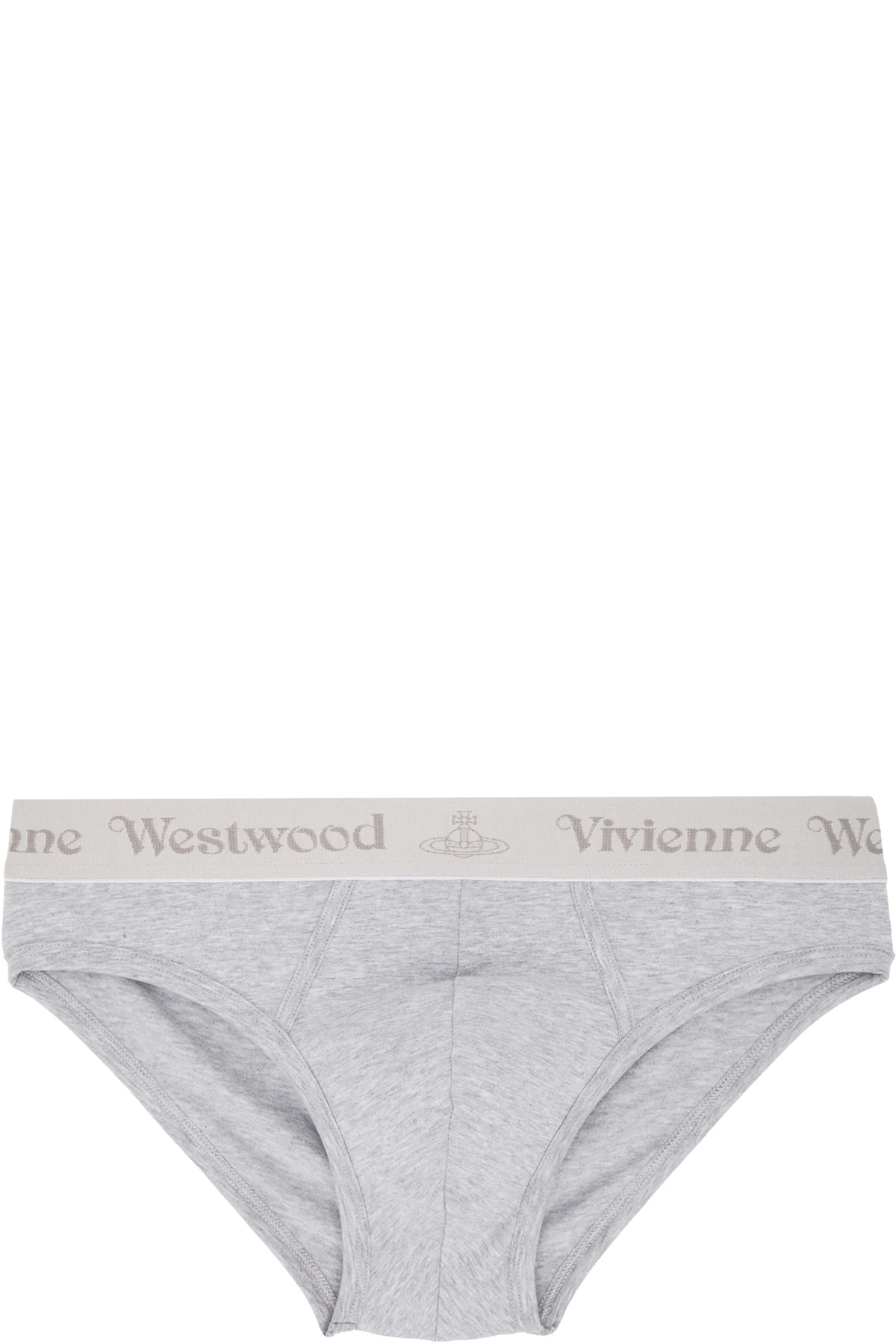 Pack of three assorted stretch cotton jersey briefs in black, gray, and white.