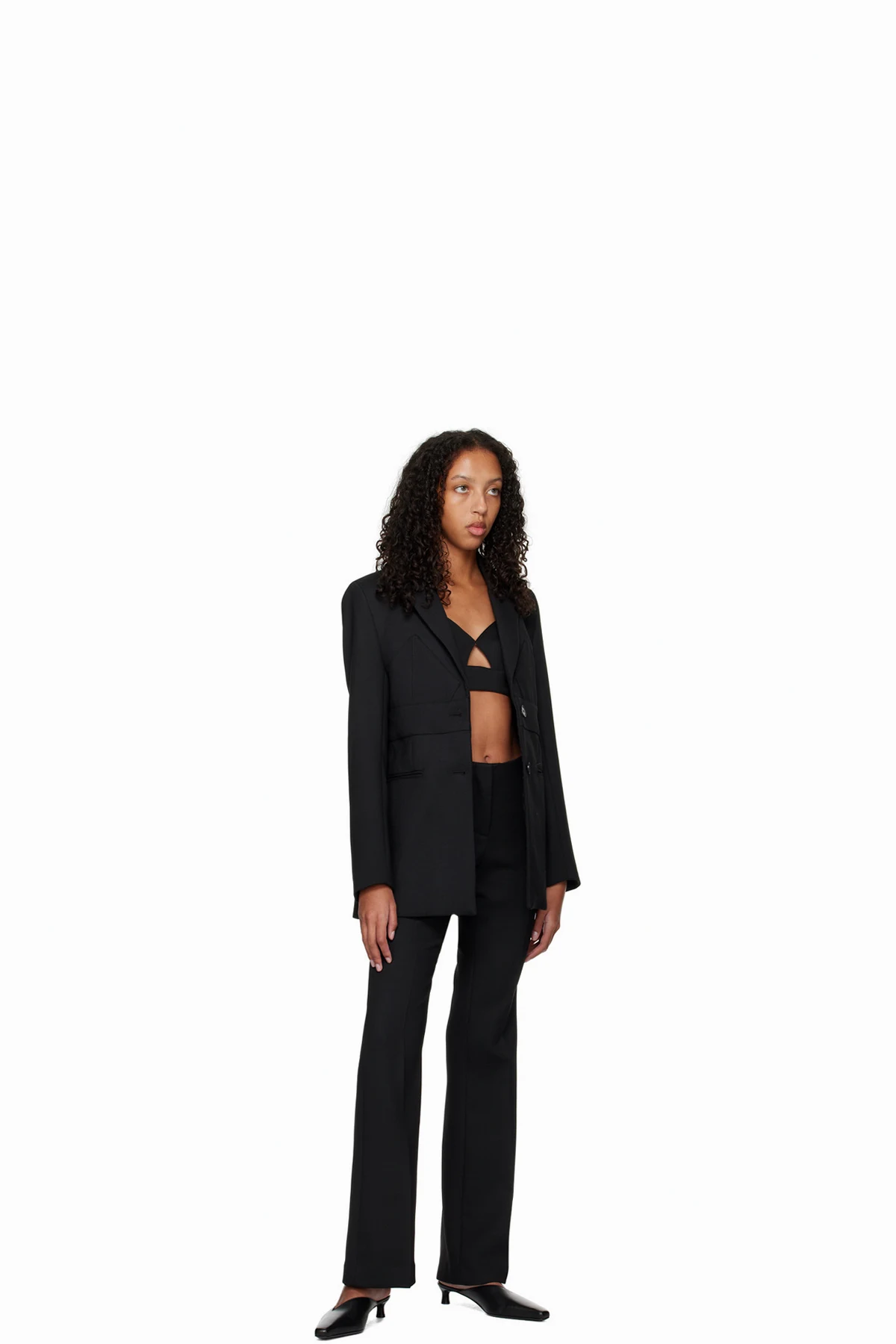 Body: 64% recycled polyester, 34% viscose, 2% elastane. Lining: 100% polyester.
