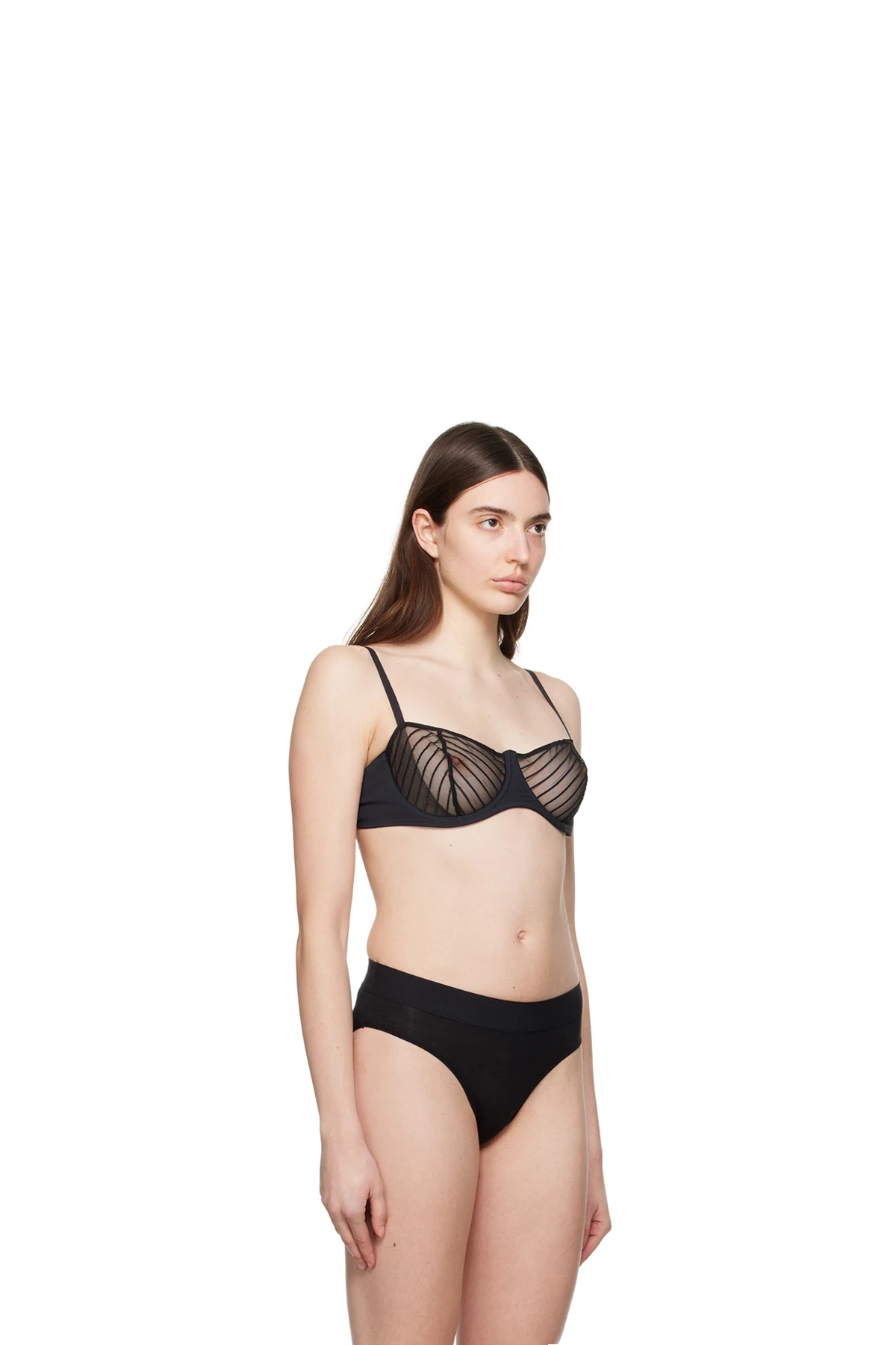 Sheer stretch nylon mesh bra.