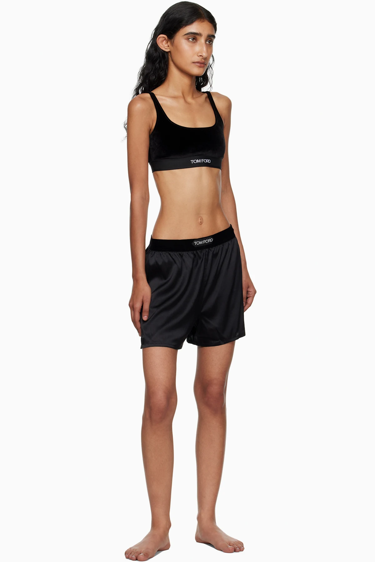 Black Stretch Lustrous Velour Signature Bralette