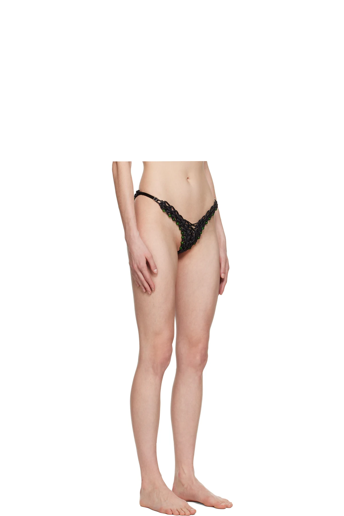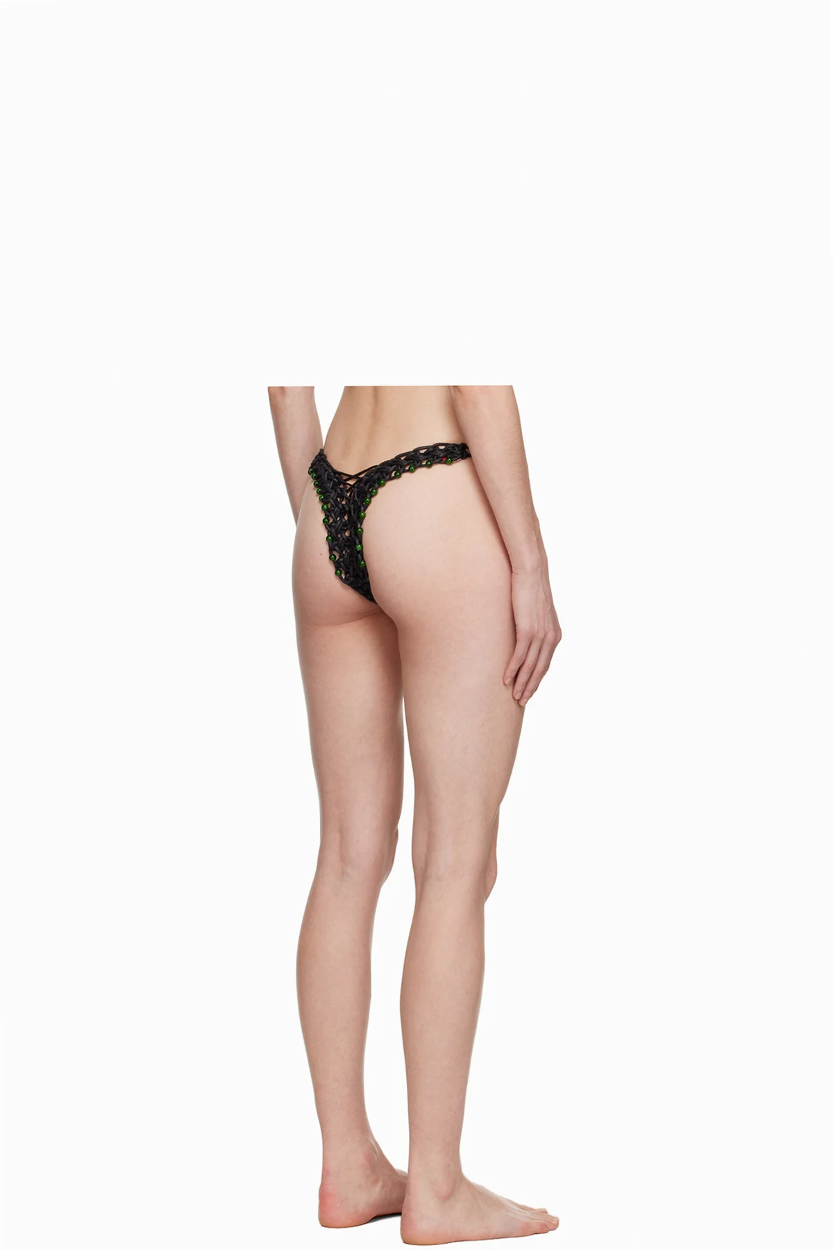 Waxed cotton harness-style braided thong. Beaded accents throughout.