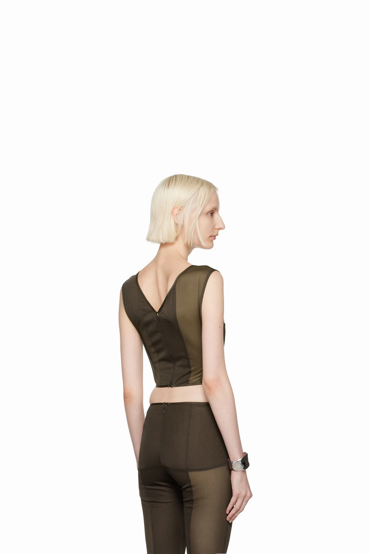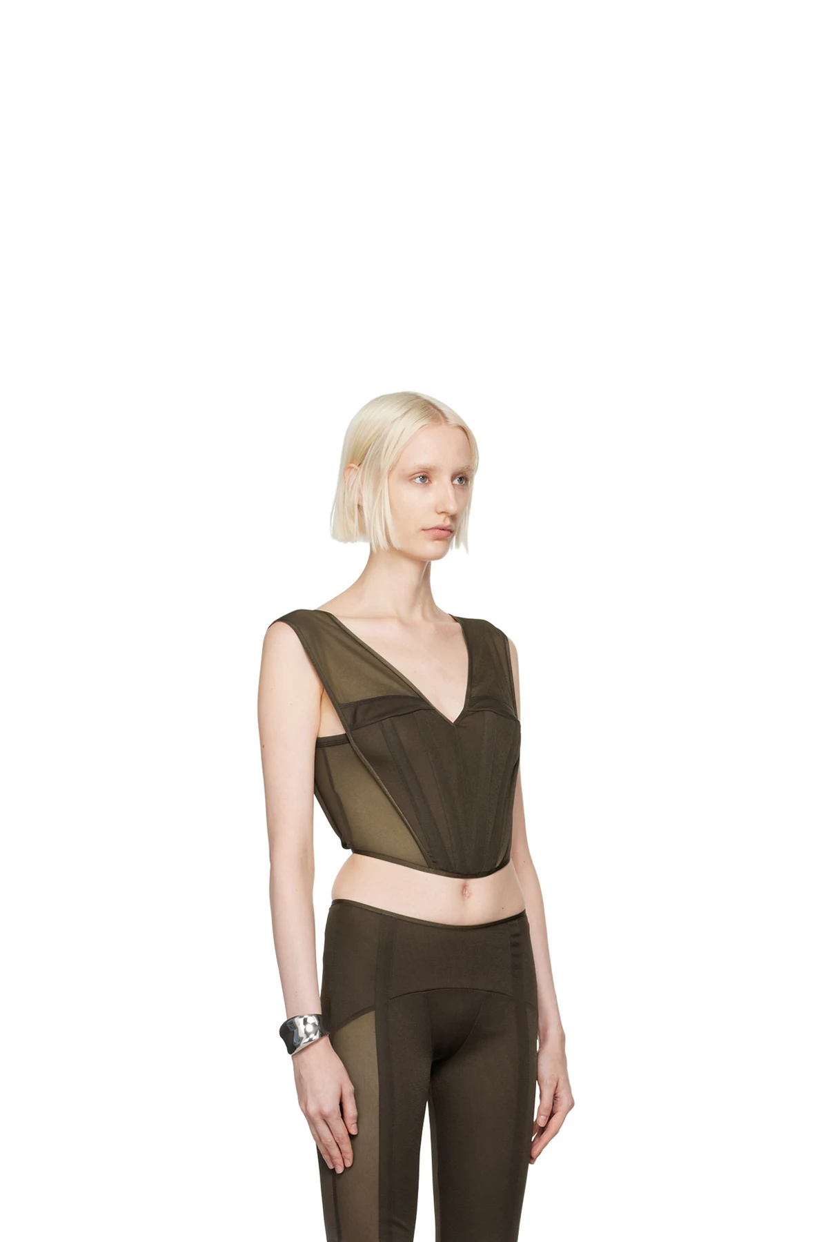 Semi-sheer polyester jersey bustier.