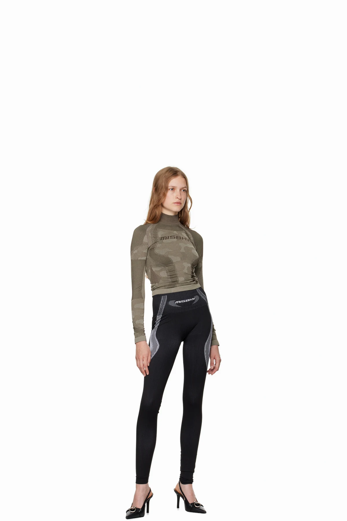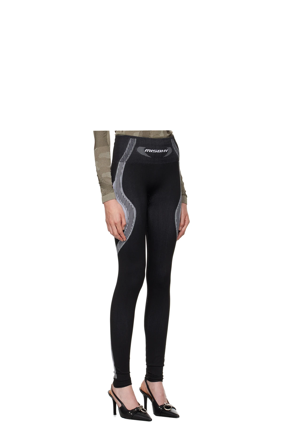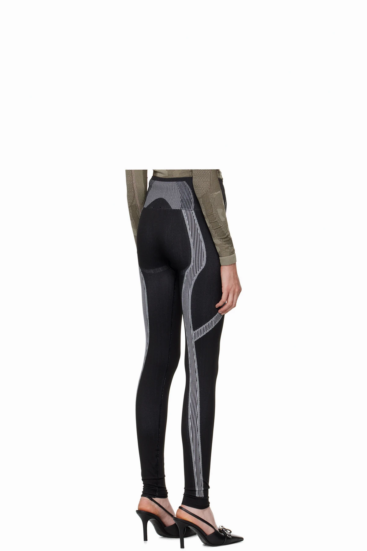 Stretch recycled nylon-blend jersey sport leggings. Jacquard stripes and check pattern throughout.