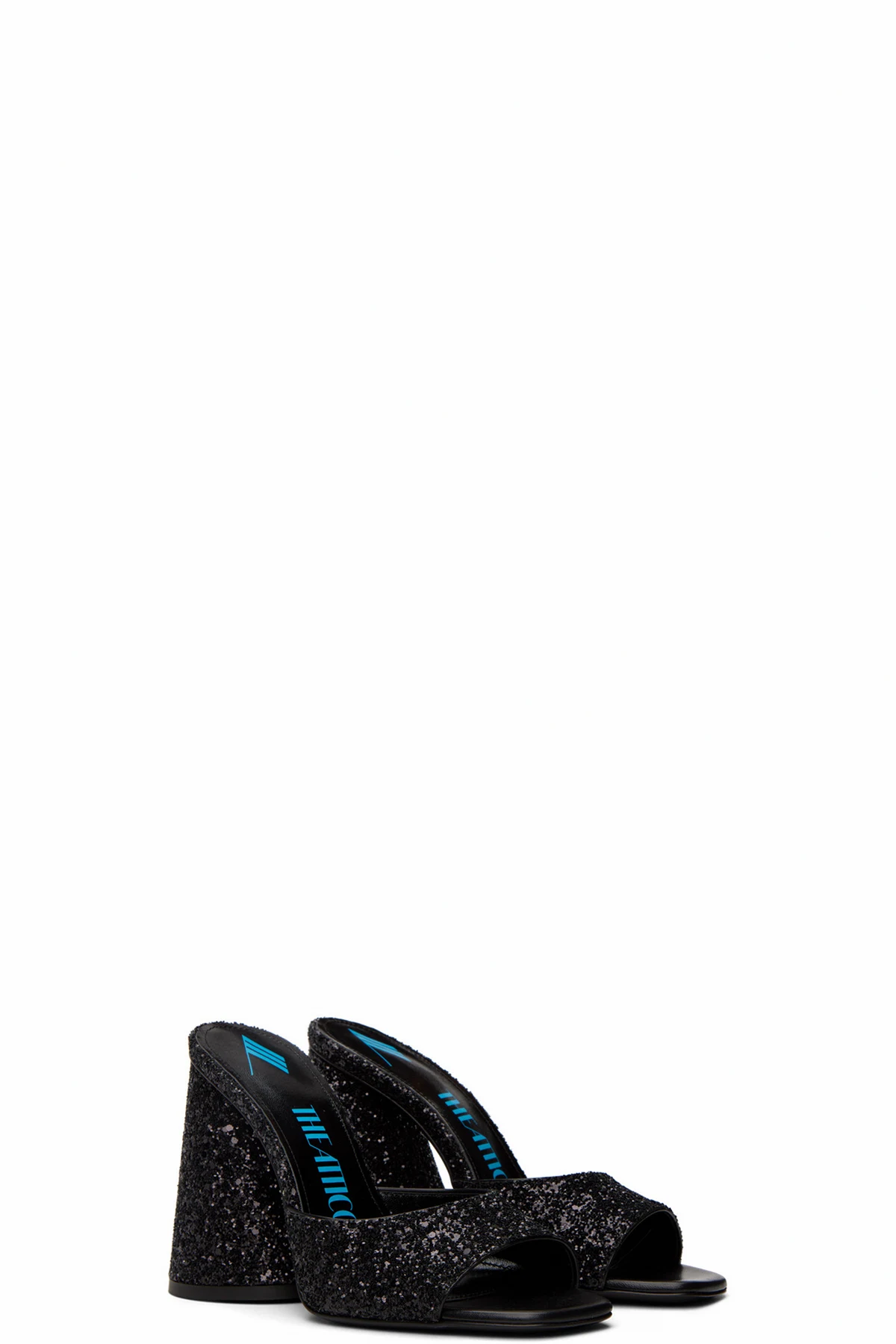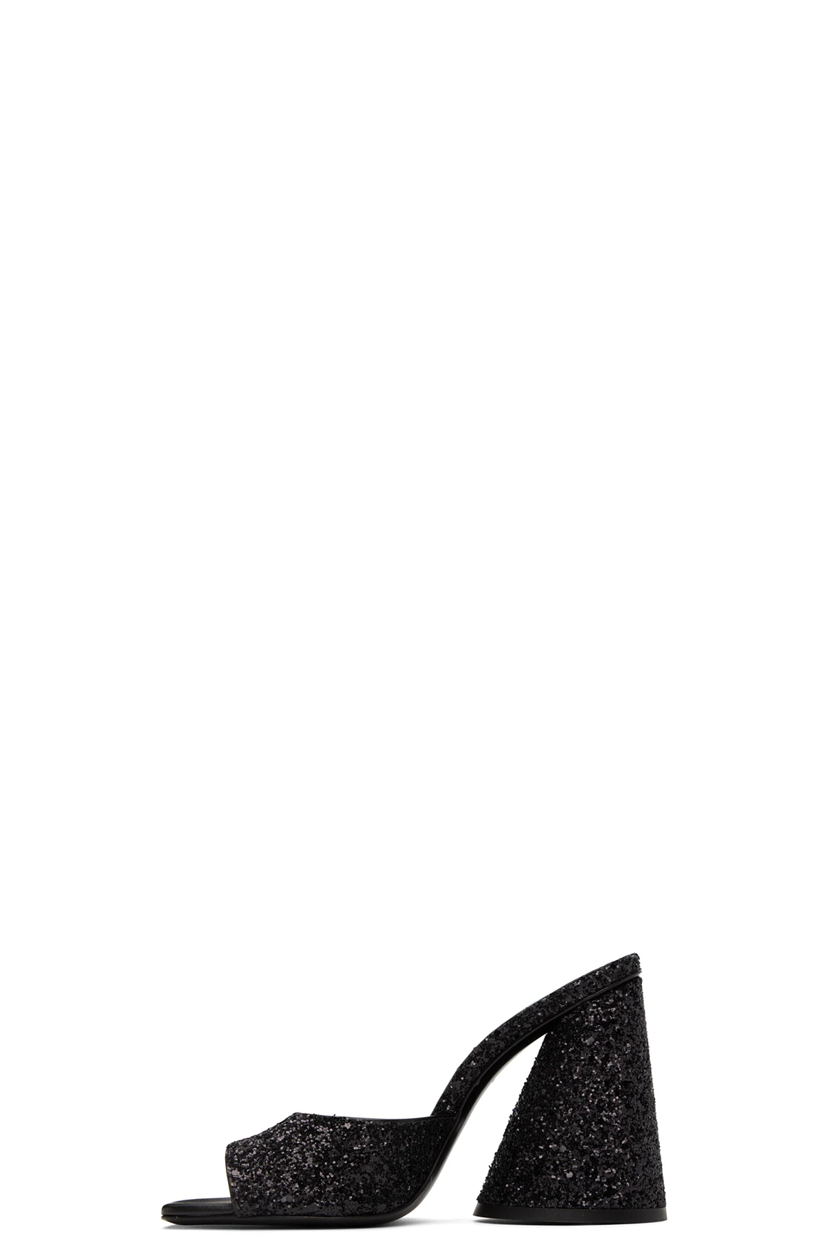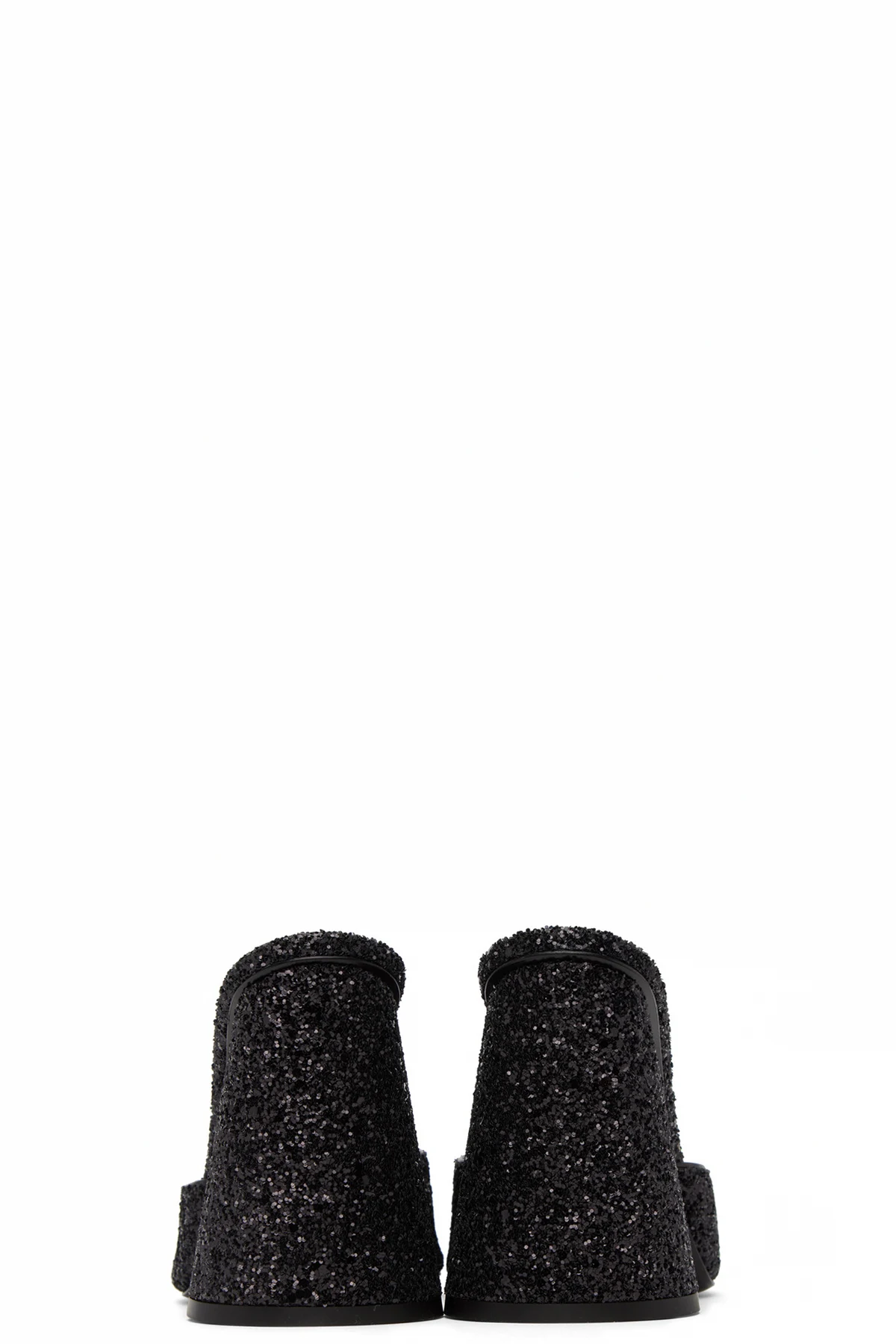 Buffed leather heeled sandals in black. Glittered detailing throughout.