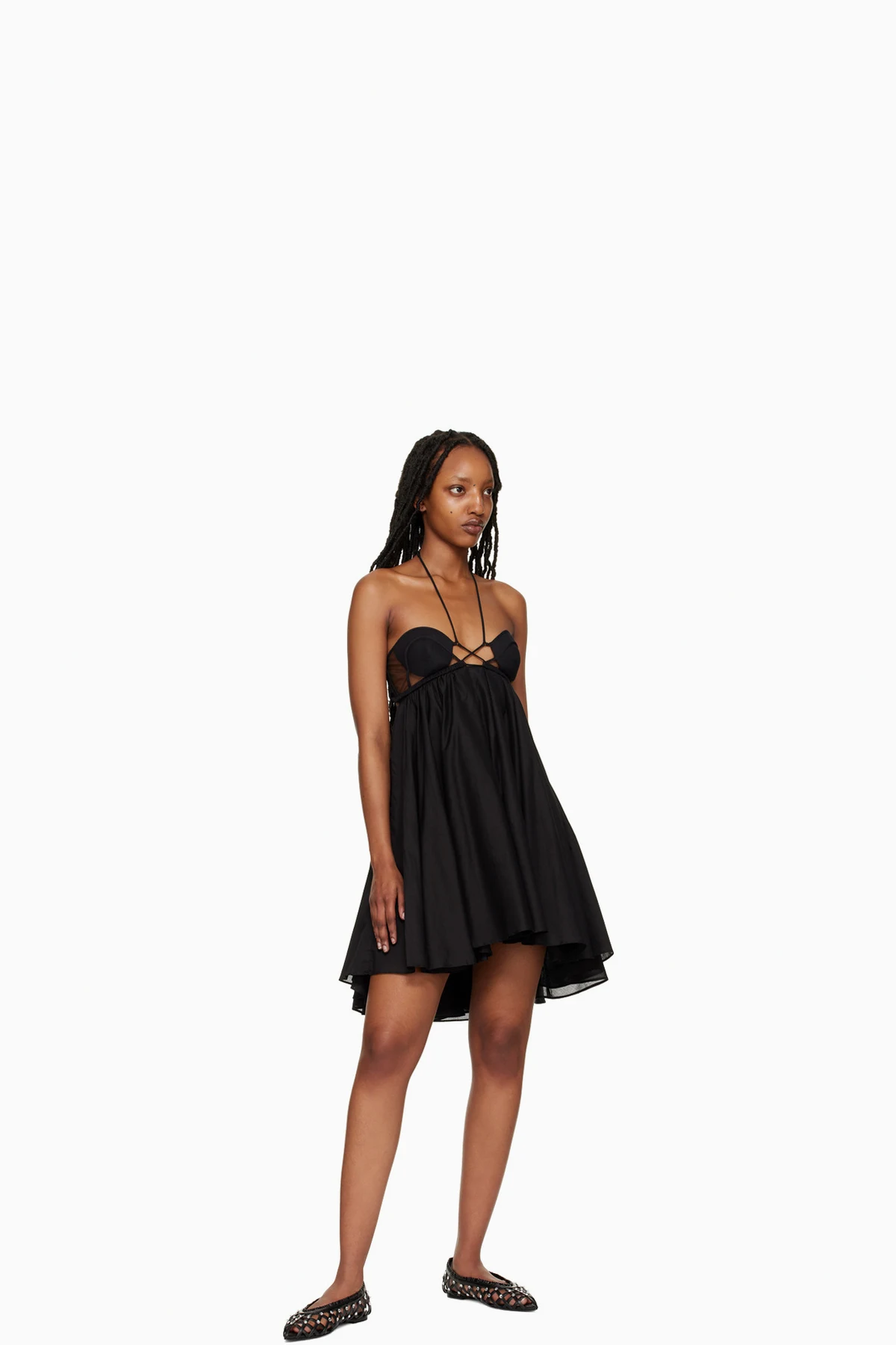 Buffed nappa leather ballerina flats in black. Crystal-cut hardware and cutouts throughout.