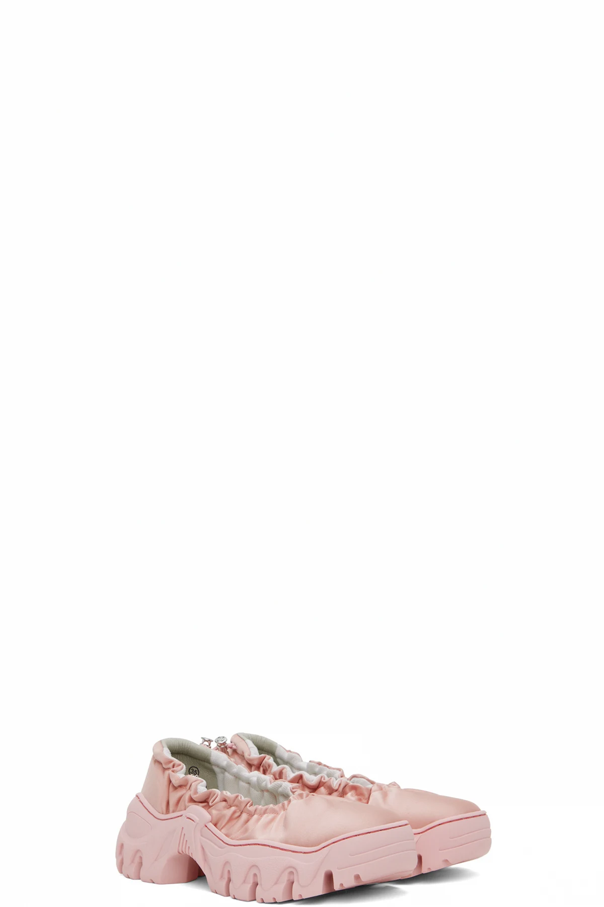 Handcrafted satin ballerina flats in pink.