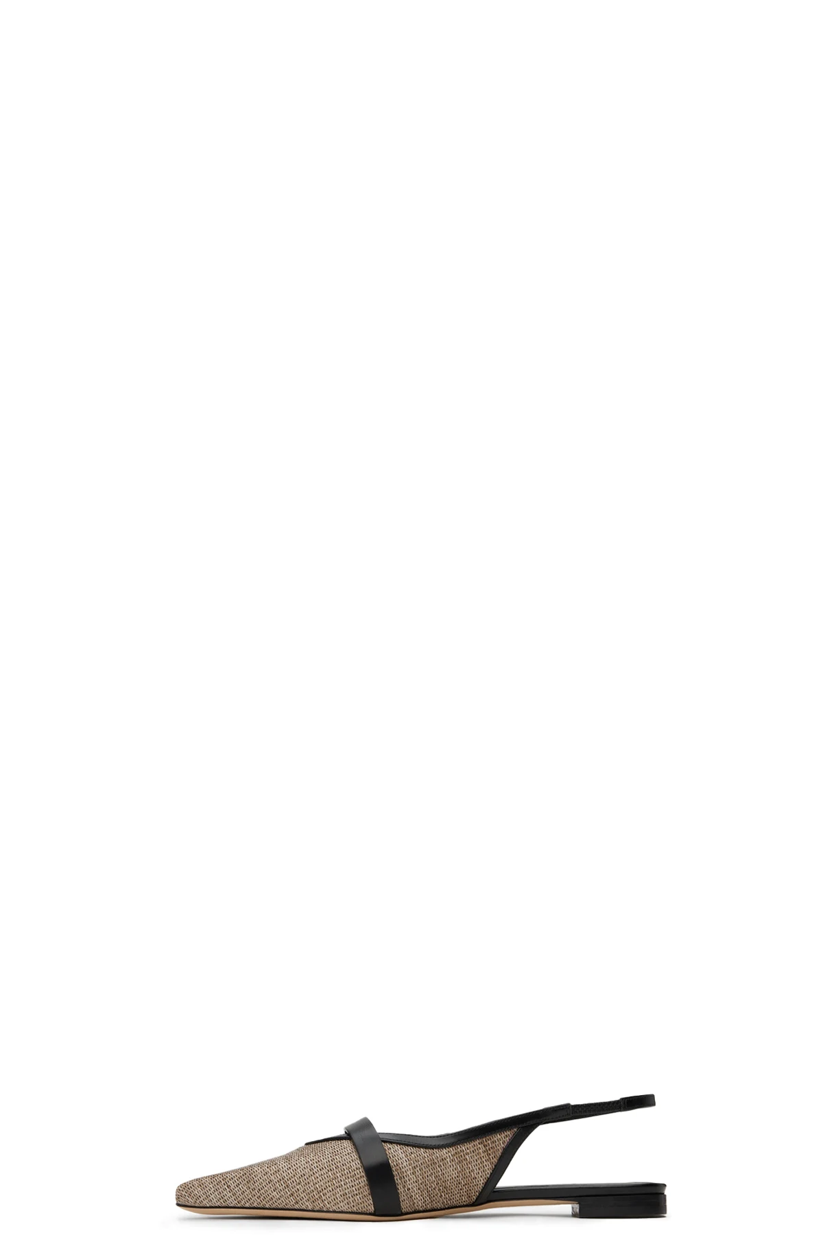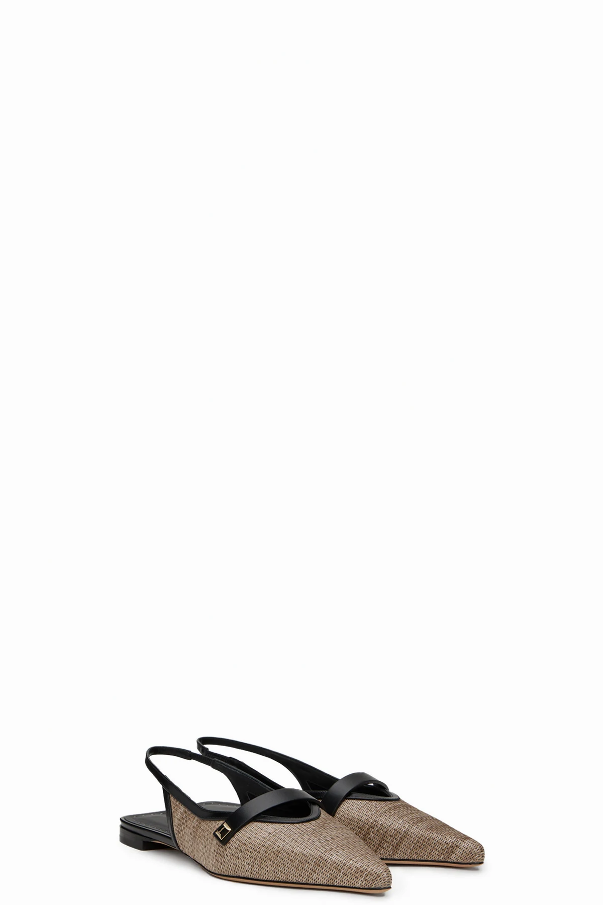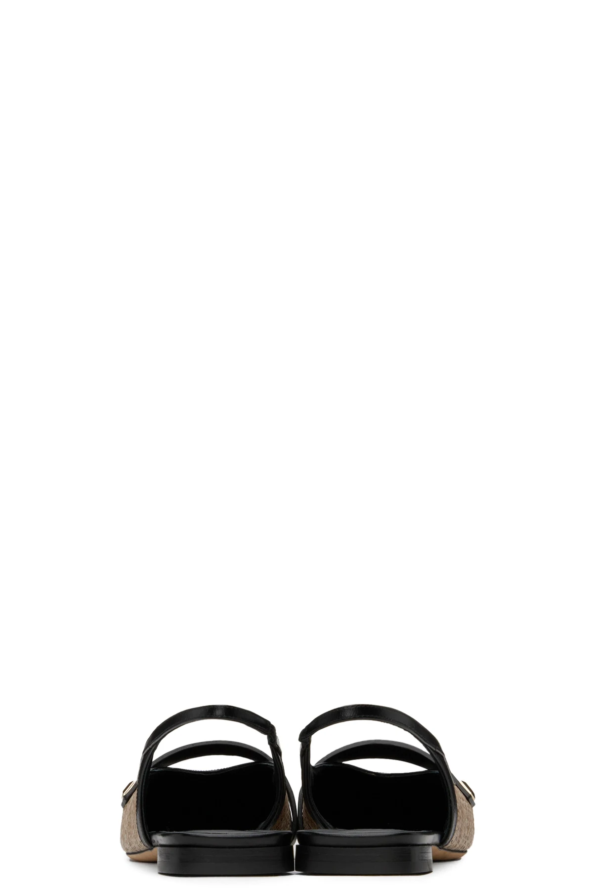 Paneled woven raffia and grained leather ballerina flats in beige and black.