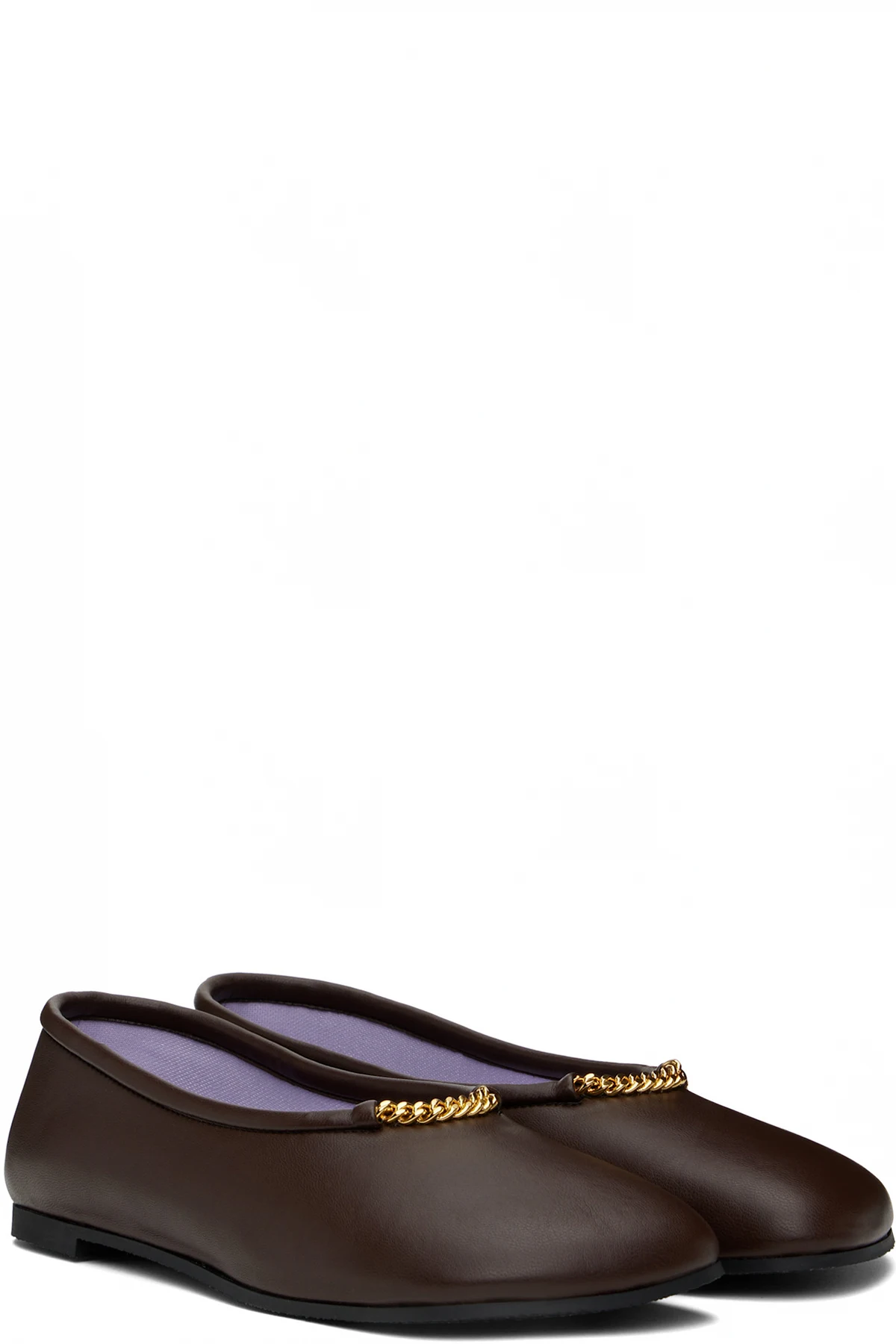 Handcrafted buffed faux-leather ballerina flats in brown
