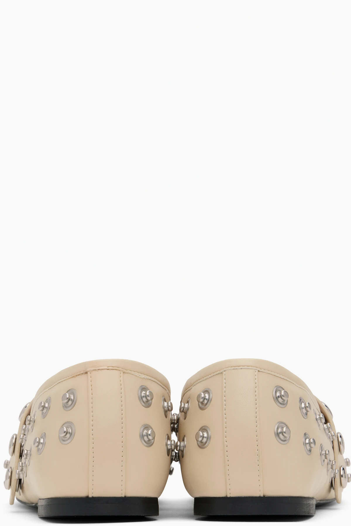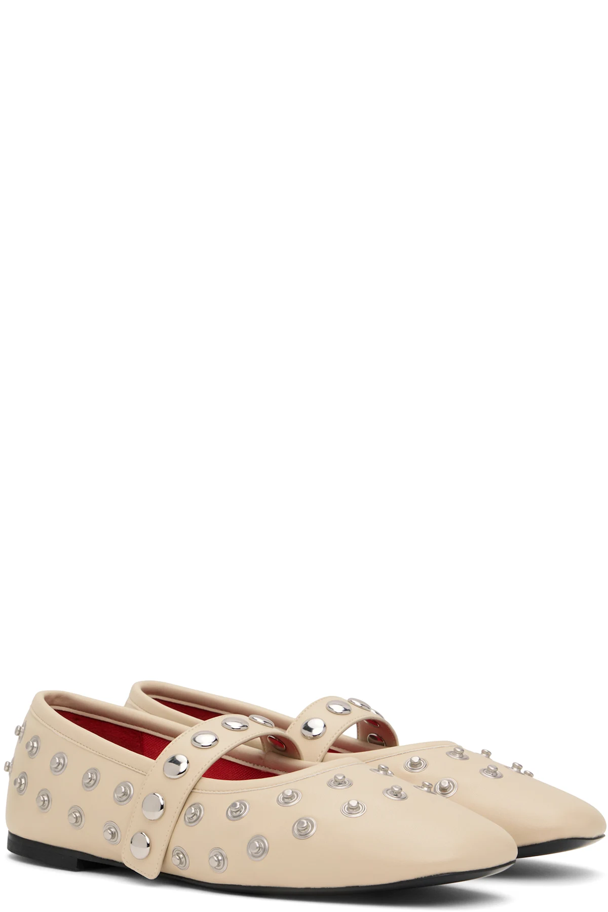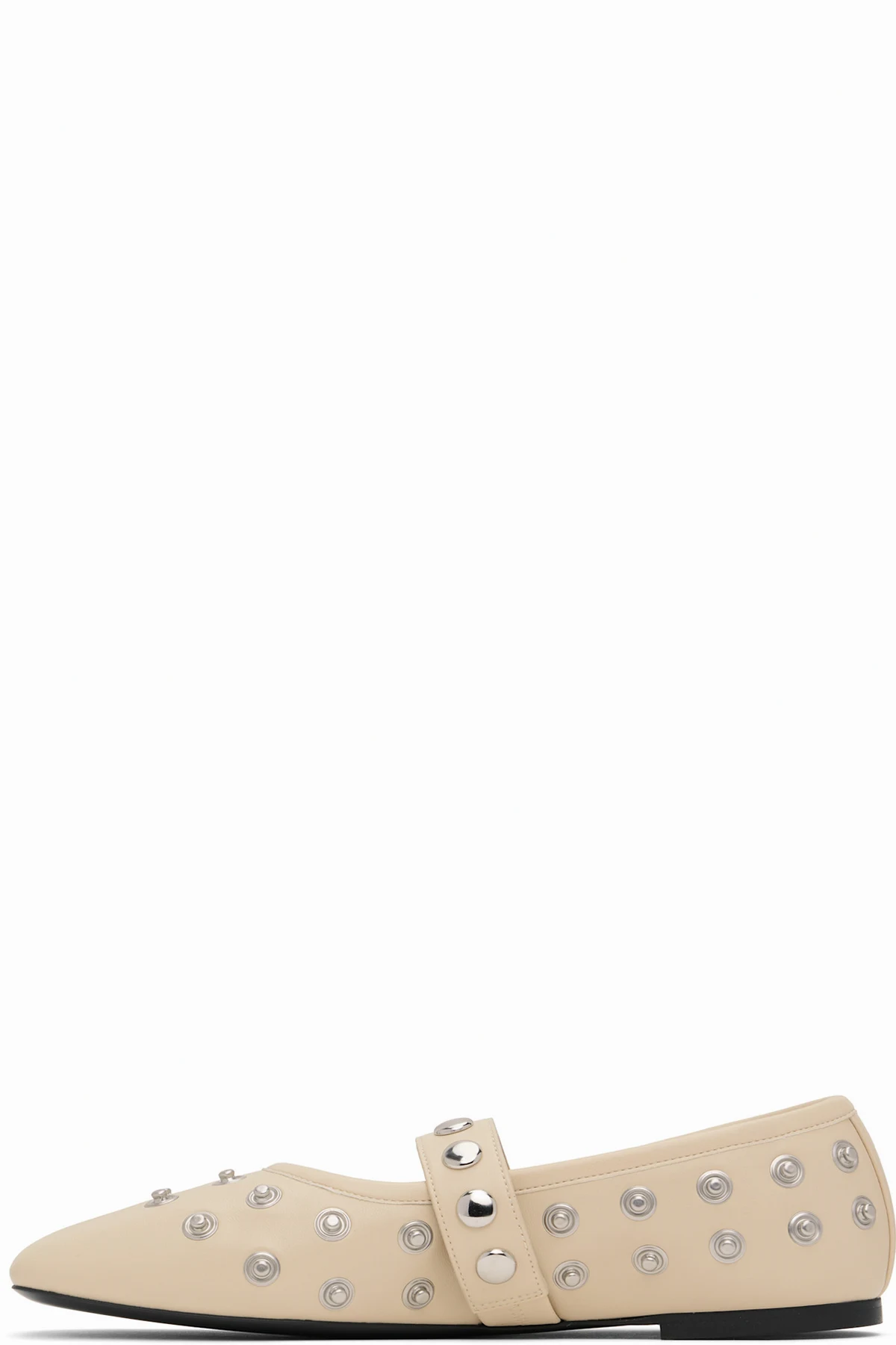 Buffed faux-leather Mary Jane-style ballerina flats in beige.