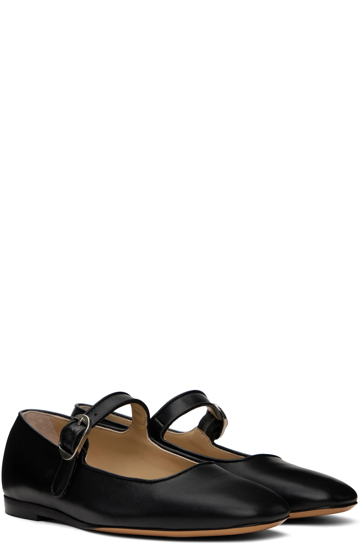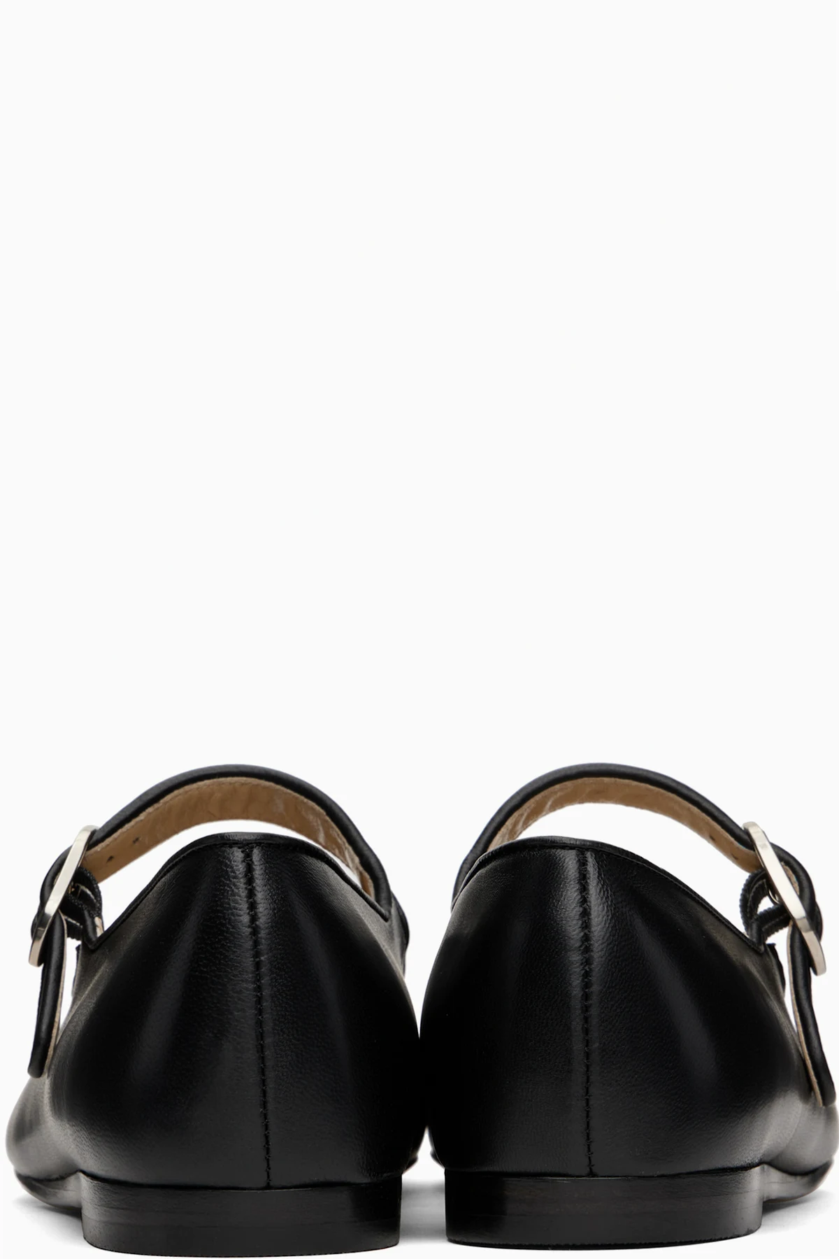 Buffed leather Mary Jane-Style ballerina flats in black.