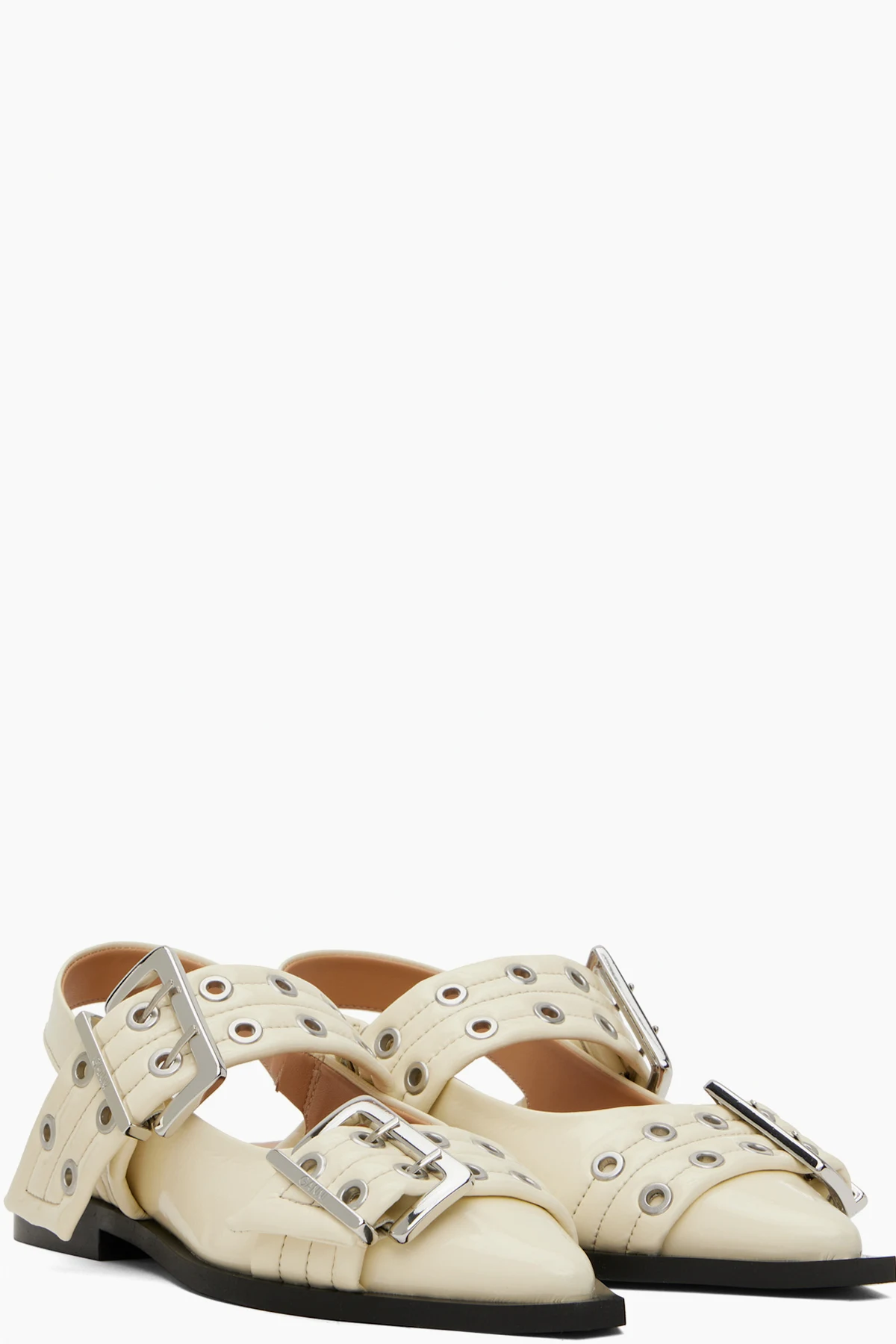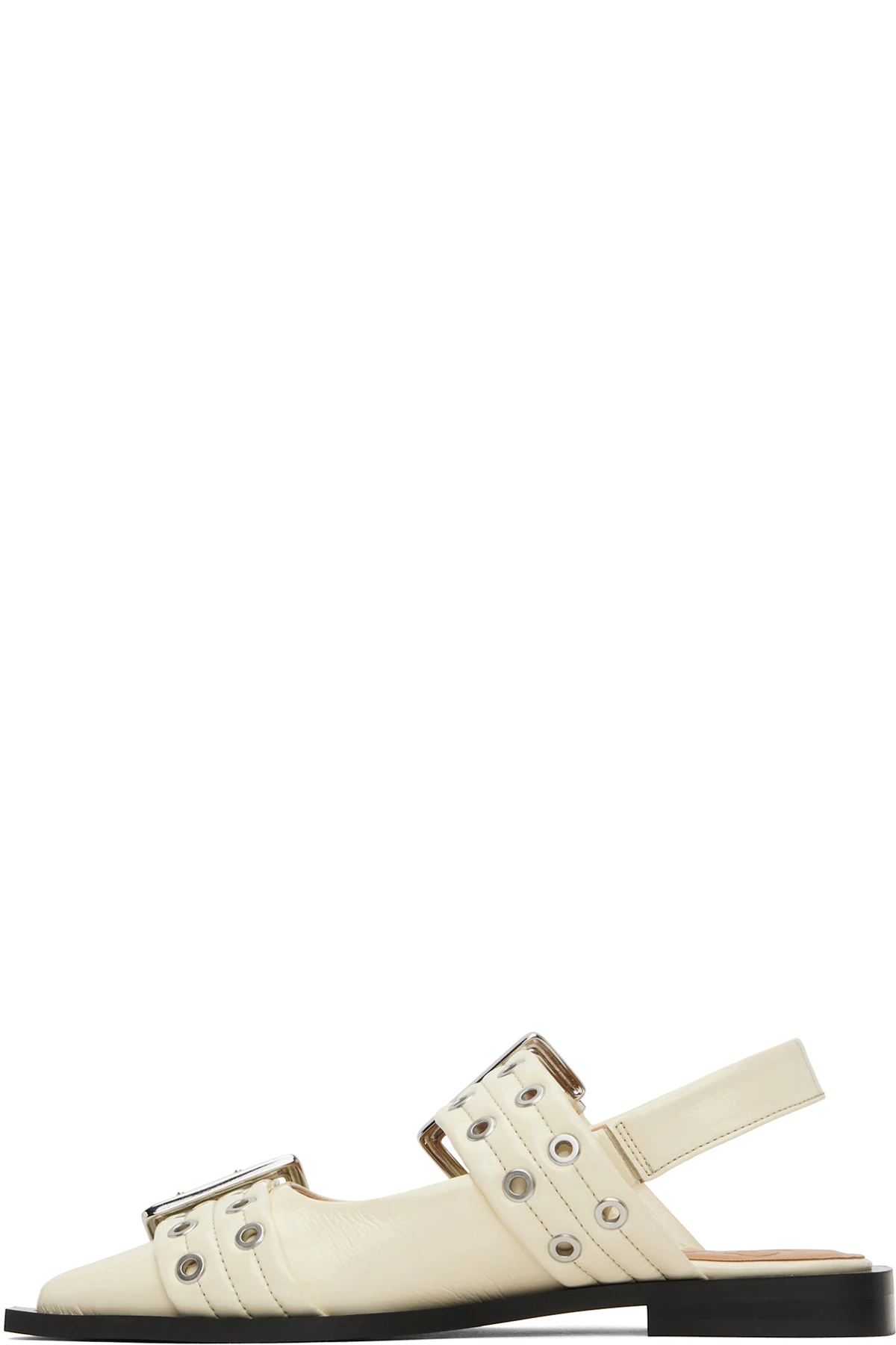 Patent faux-leather flats in off-white.