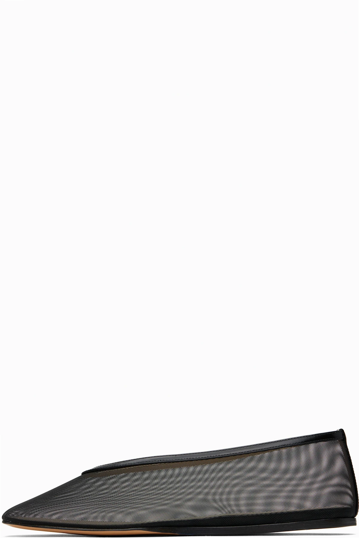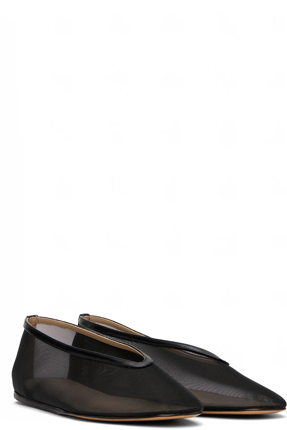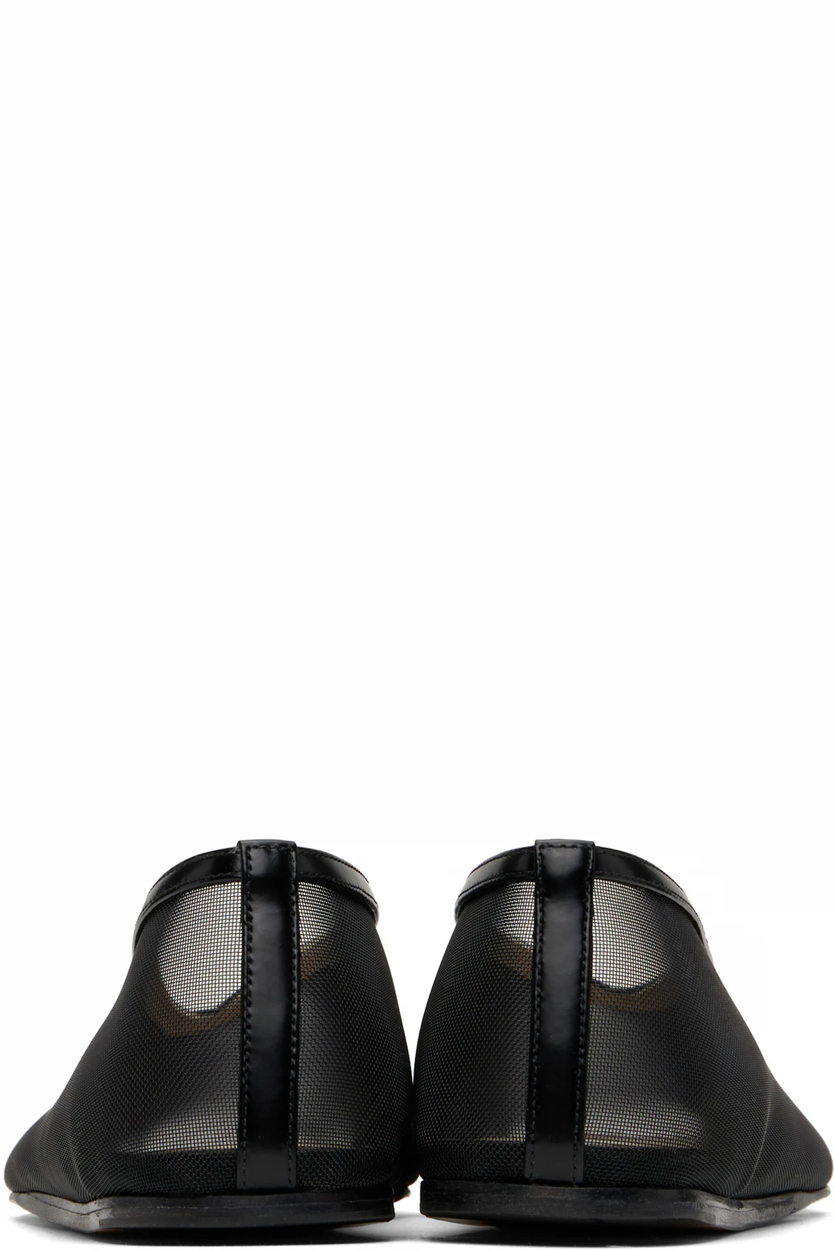 Handcrafted sheer mesh ballerina flats in black.
