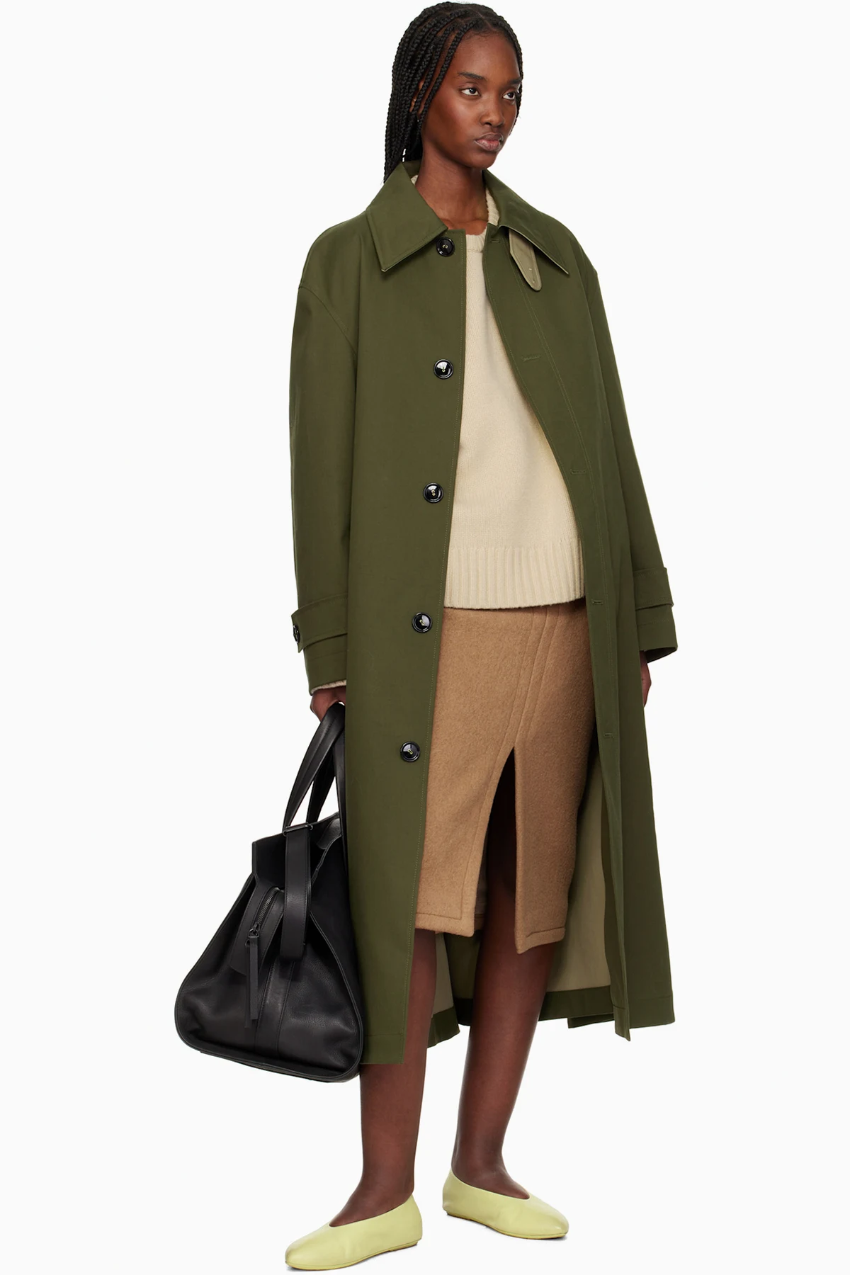 Buffed calfskin ballerina flats in green.
