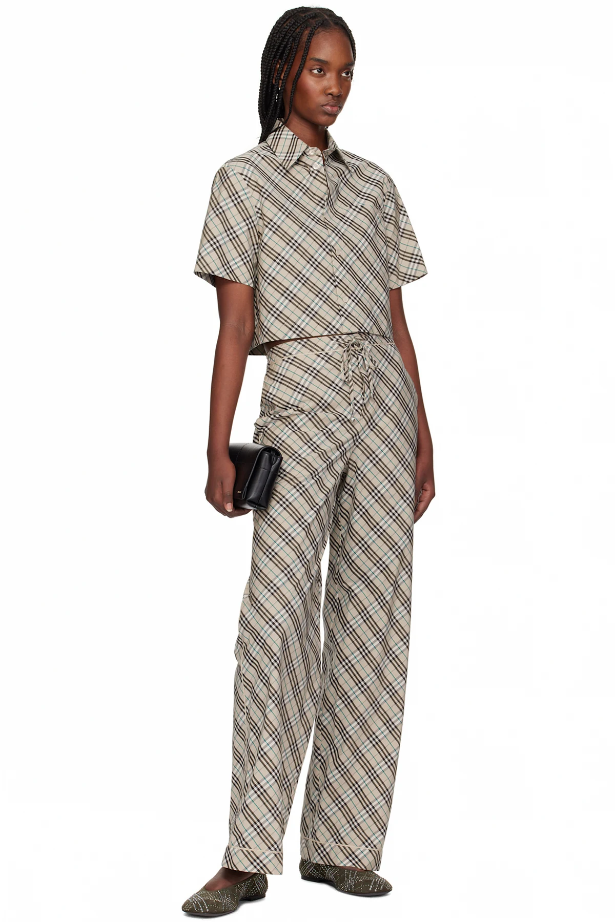 · Check pattern with crystal-cut appliqués throughout