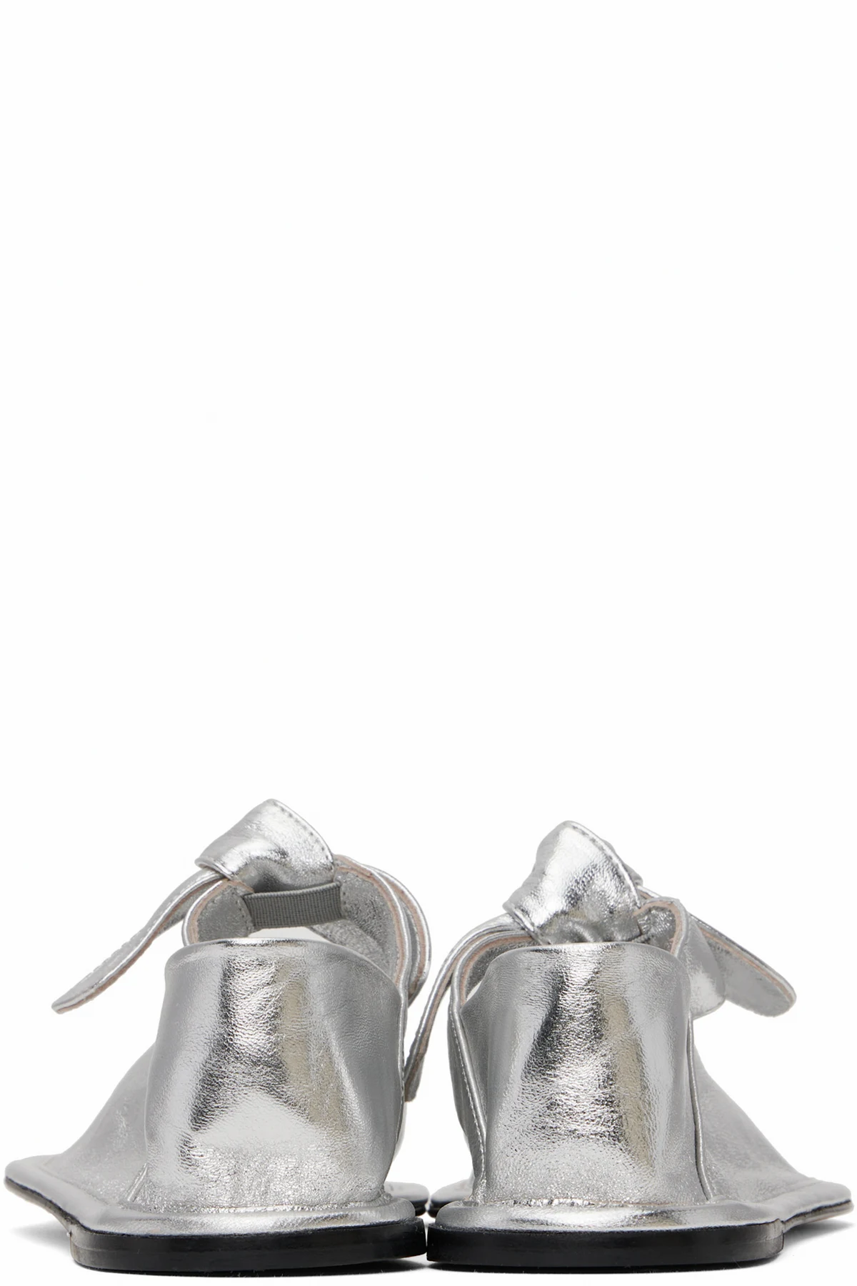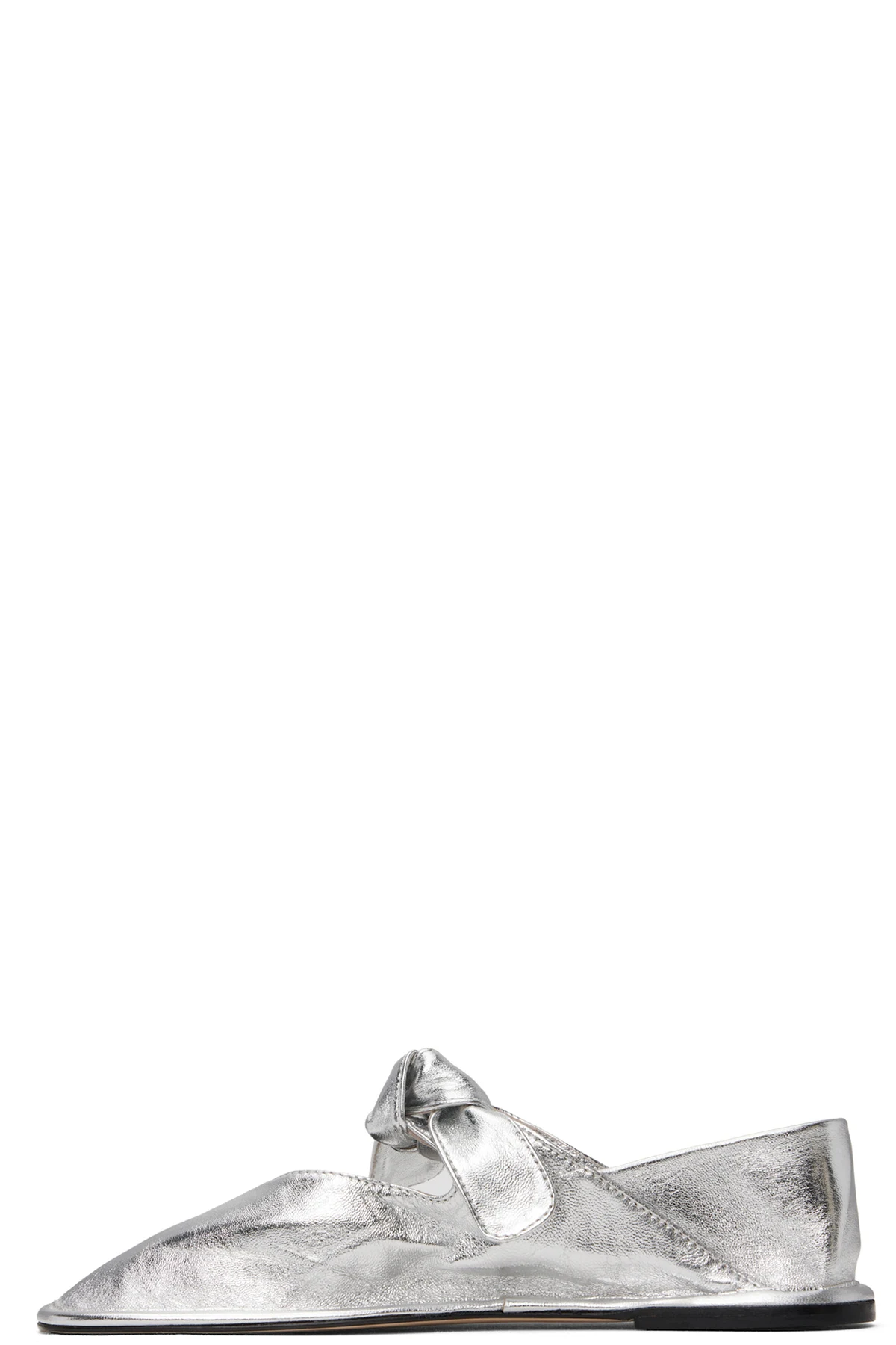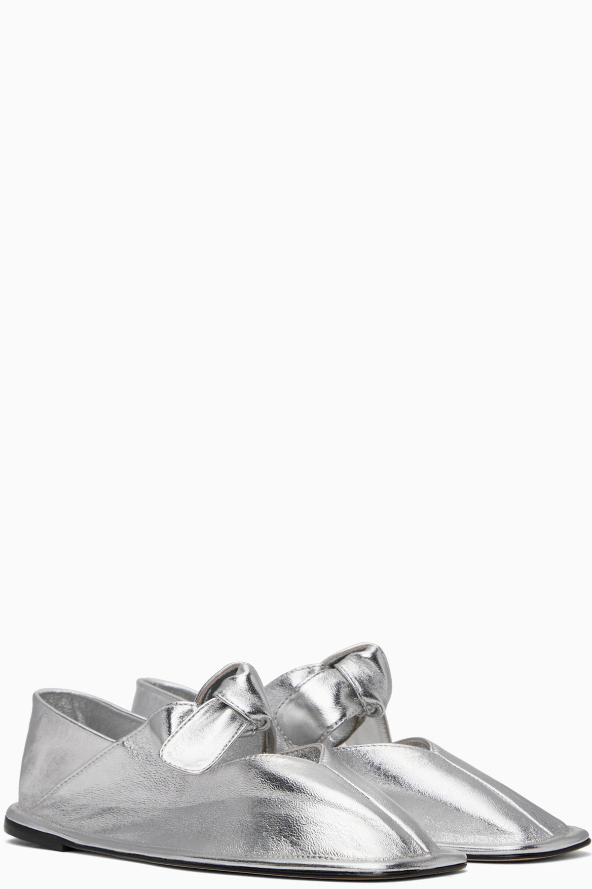 Handcrafted grained lambskin ballerina flats in metallic silver tone.