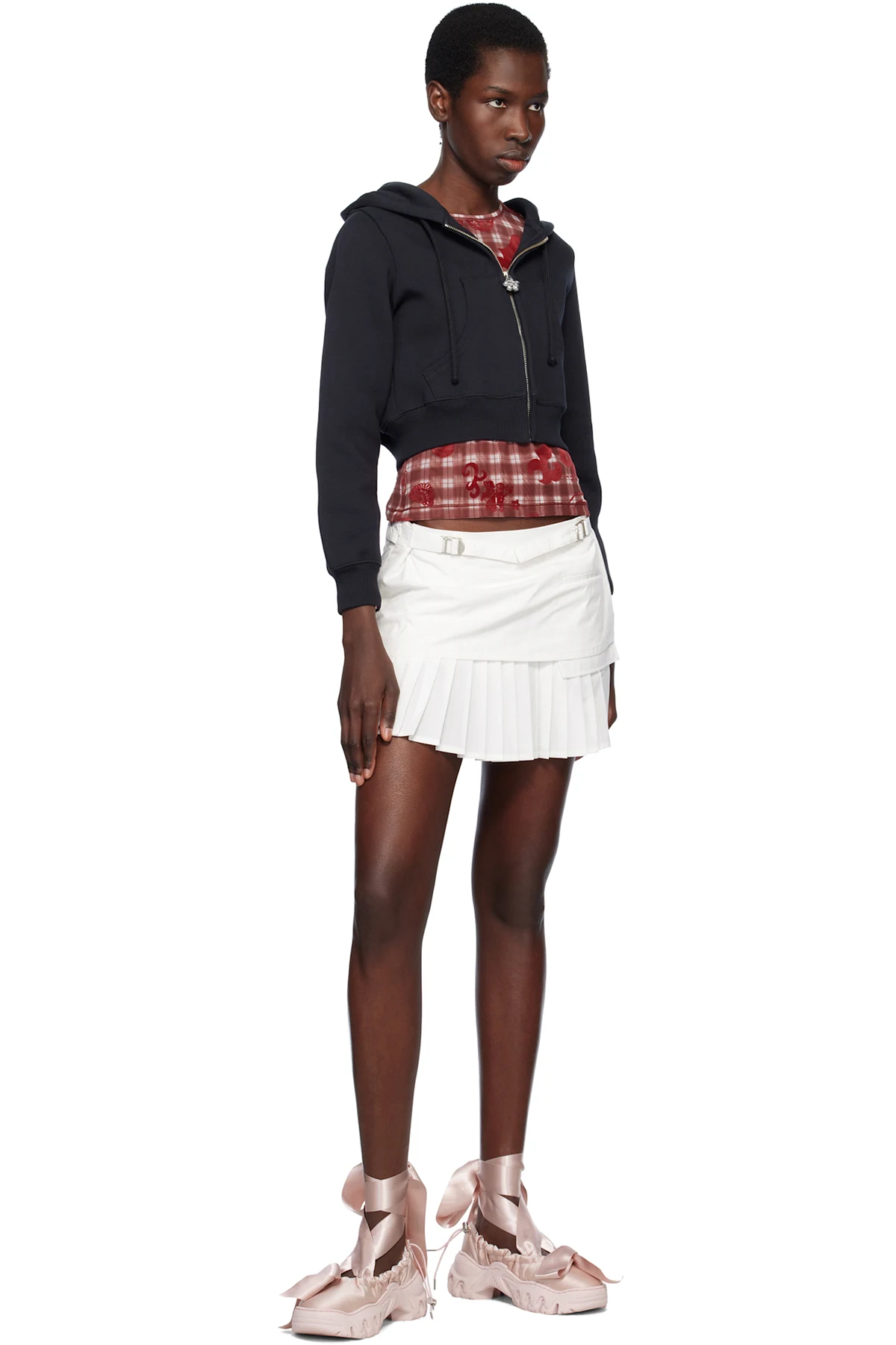 · Wraparound self-tie ribbon at ankles