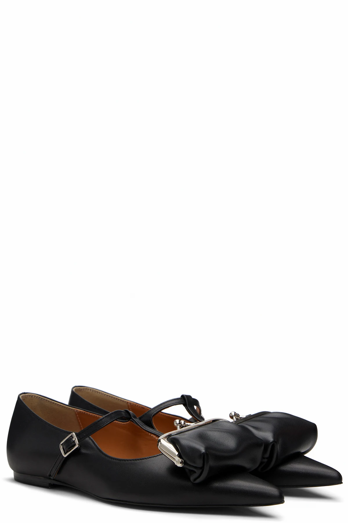 Buffed leather Mary Jane-style ballerina flats.