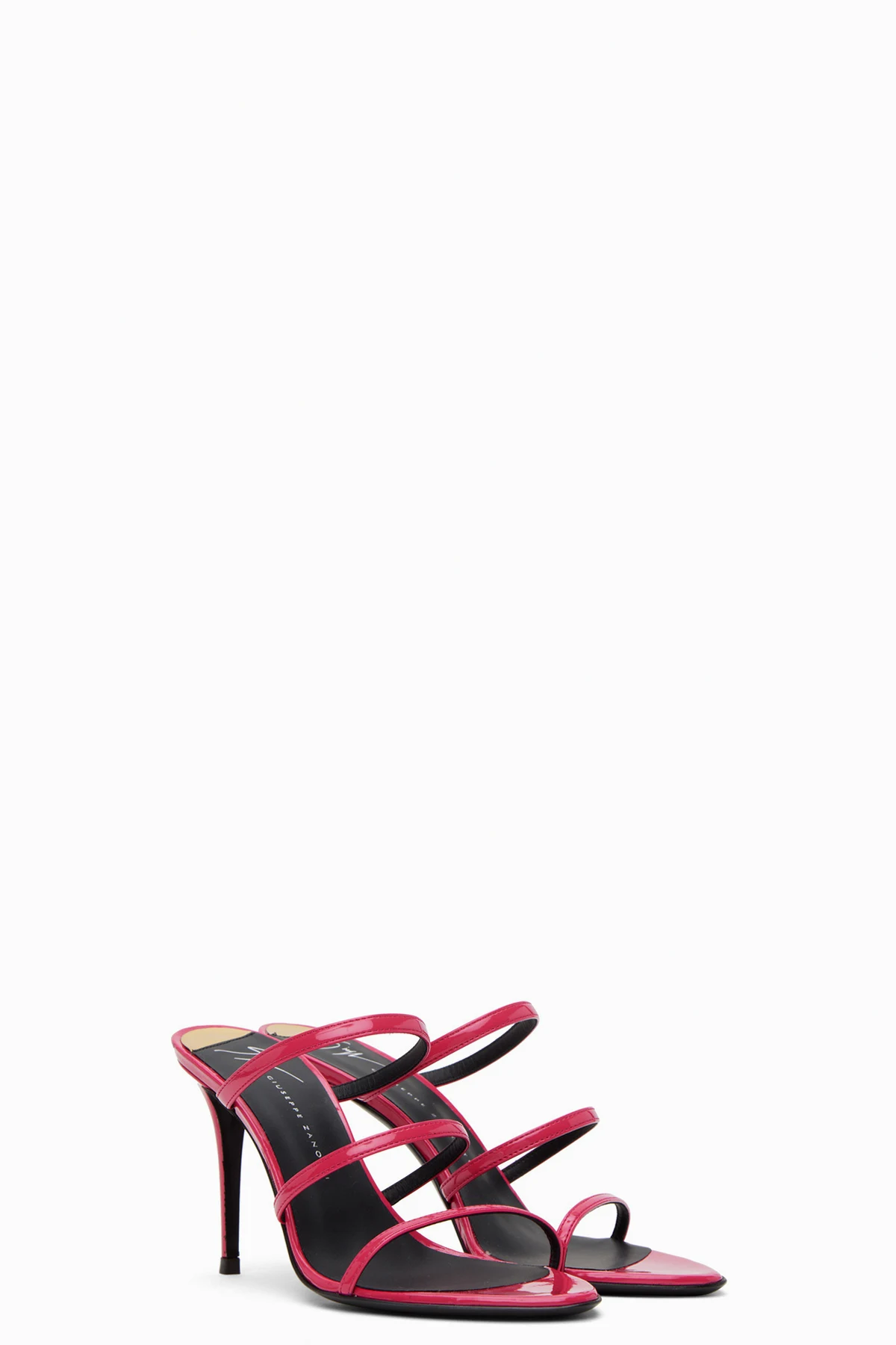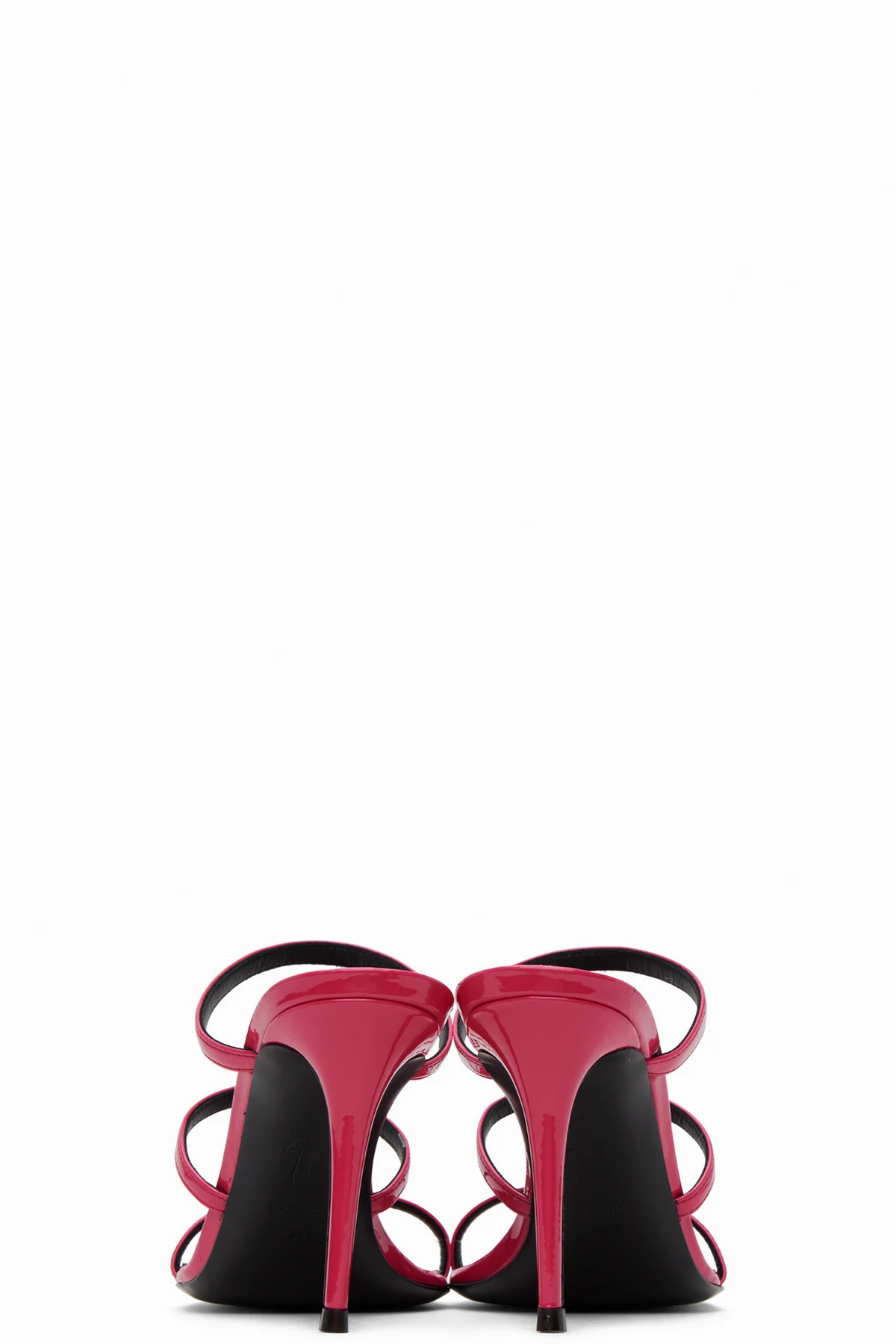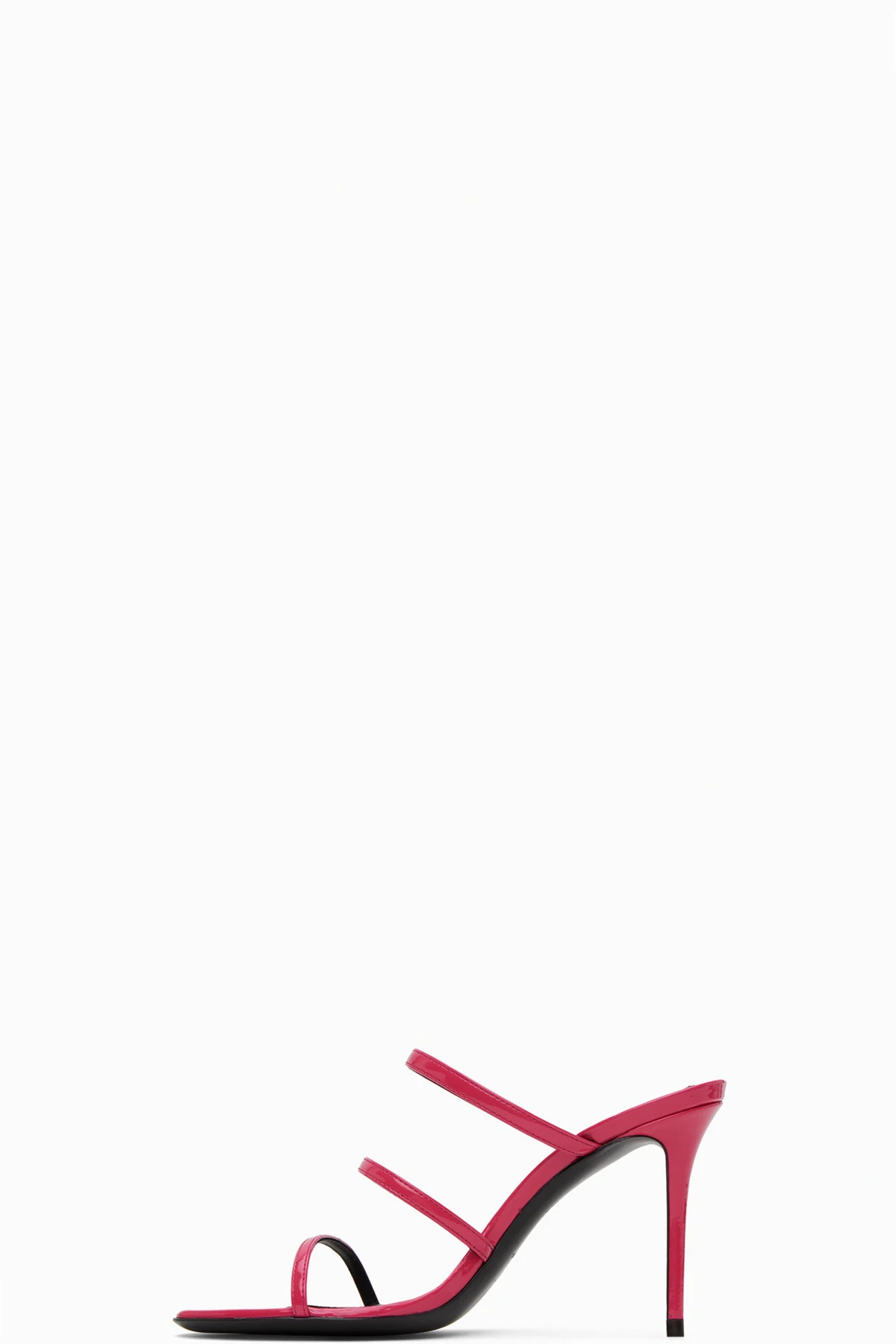 Patent faux-leather slip-on heeled sandals in pink.
