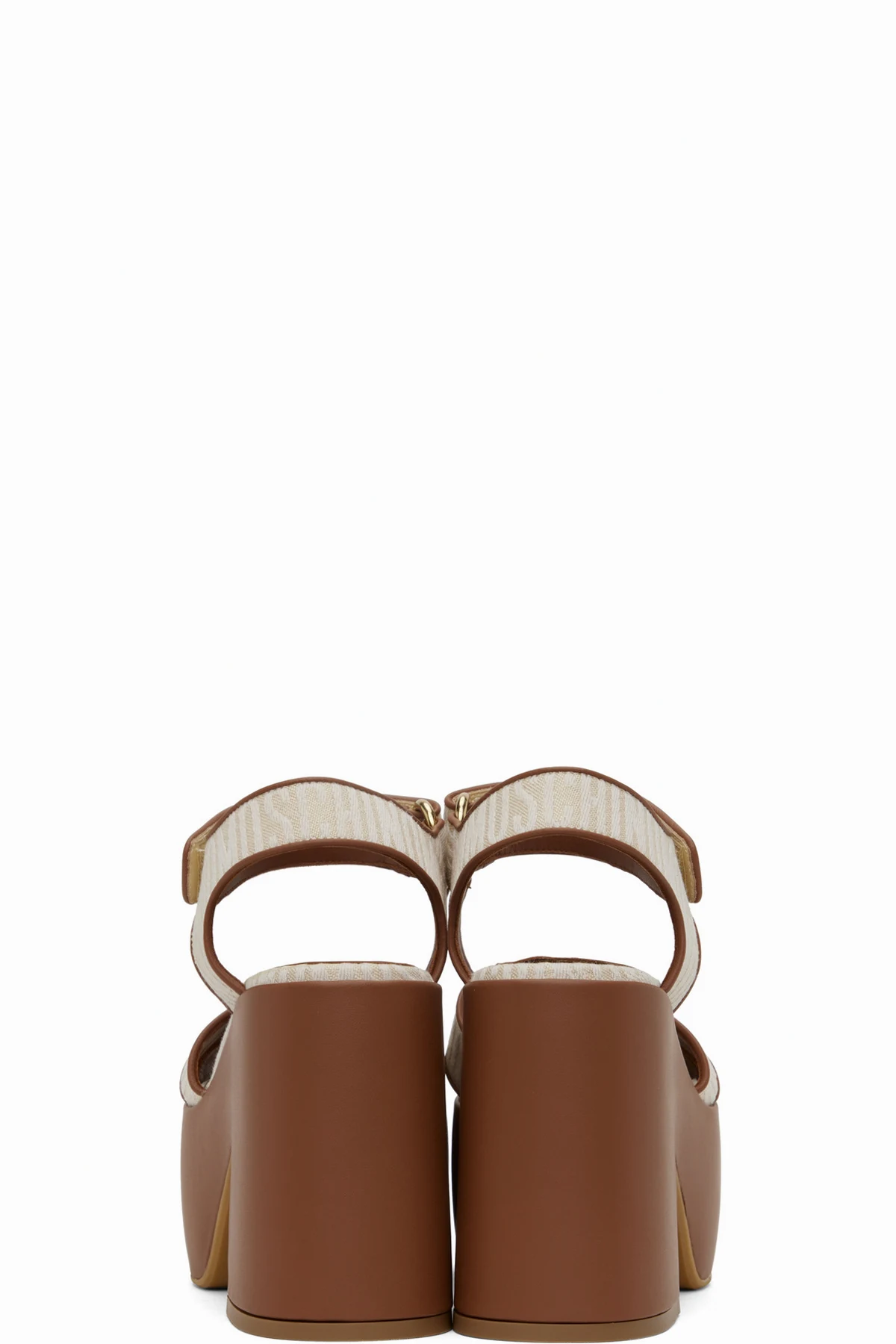 Beige & Brown Logo Heeled Sandals